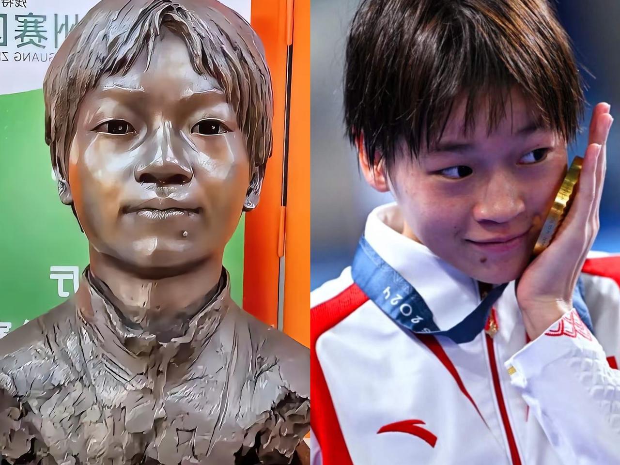 谁能想到啊!全红婵这个看似普通的农村小女孩,居然在广州体育职业技术学院拥有了自己的青铜雕像,连下巴上标志性的痣都栩栩如生。她出身农民家庭,却用实力惊艳了所有人。网友说得没错,她就是全球孩子的榜样。 这雕像可不只是简单的容貌定格,它代表着全红婵拼搏的力量。在我看来,出身平凡根本不是限制,实力和坚持才是人生最闪亮的勋章。她把对跳水的热爱发挥到极致,用一次次完美跳水改写了自己的人生。这尊雕像就是对她坚守的最好致敬。 宝子们,你们觉得全红婵的励志故事,能给咱们带来啥启发呢?