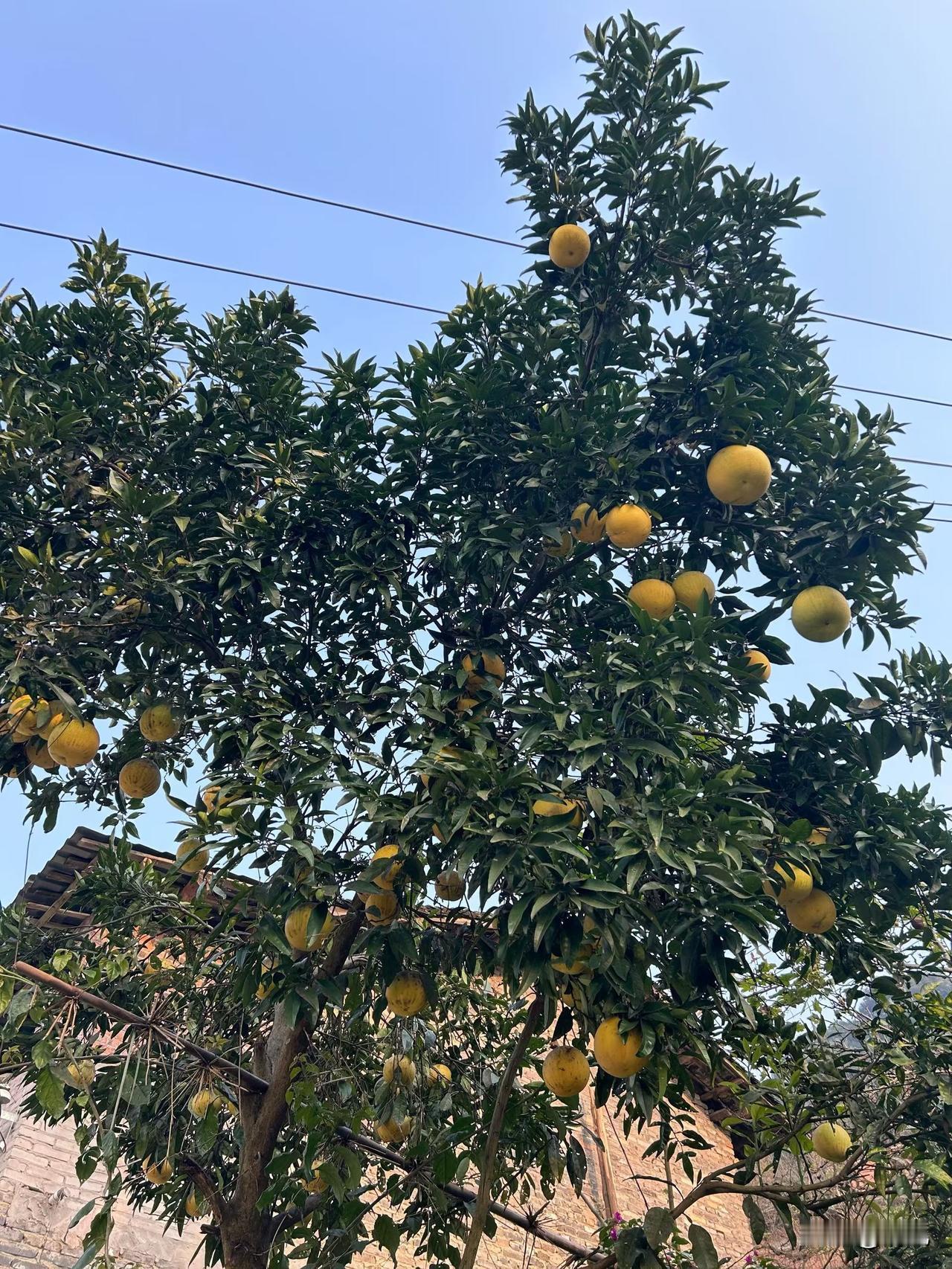 今早路过老巷子,一抬头撞见这棵结满柚子的树,瞬间被戳中了! 黄澄澄的果子坠得