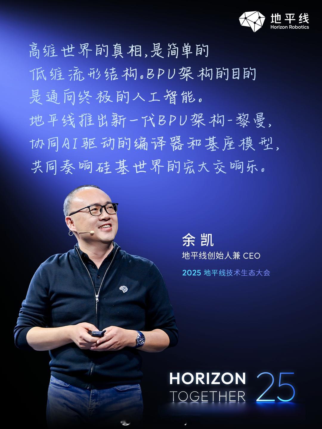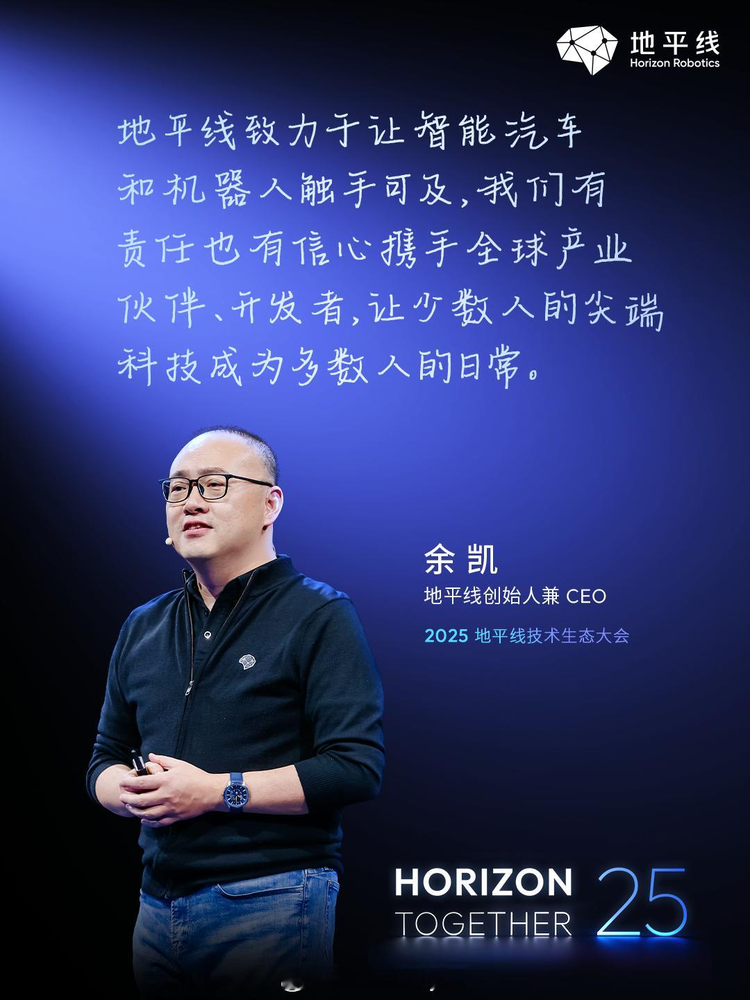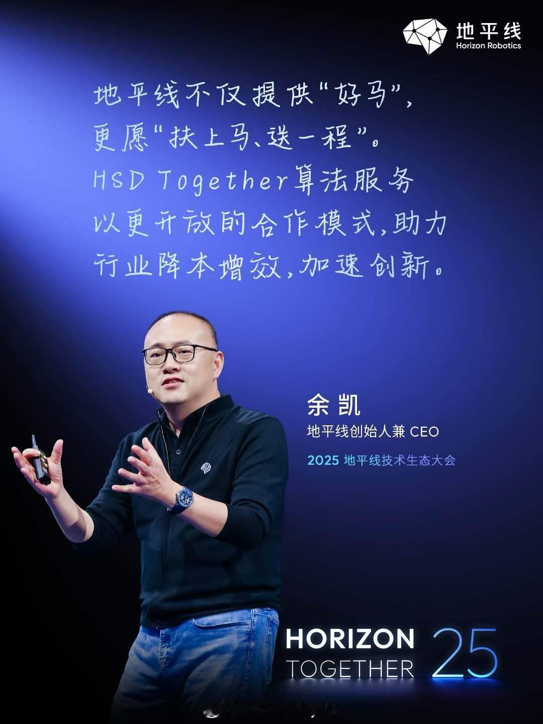 从“独自向上”到“并肩登高”,一起让科技走进千家万户!智能浪潮来袭,行业该如何携手前行?地平线余凯给出答案:从“向高而行”升级为“向高同行”,靠硬核技术基座+开放生态,帮伙伴玩转智能汽车与通用机器人。这一切的底气,源于地平线的底层技术突破——第四代BPU架构“黎曼”,搭配AI编译器和基座模型未来更开放、更亲民:地平线用领先智驾大模型,打开物理AI新空间;“比开放更开放”的HSD Together算法服务,帮伙伴降本增效、快速创新。不仅让高阶智驾落地13万级车型,更要坚定走进十万级国民车市场让少数人的尖端科技,变成多数人的日常便利2025地平线技术生态大会 人人都是中国智驾合伙人