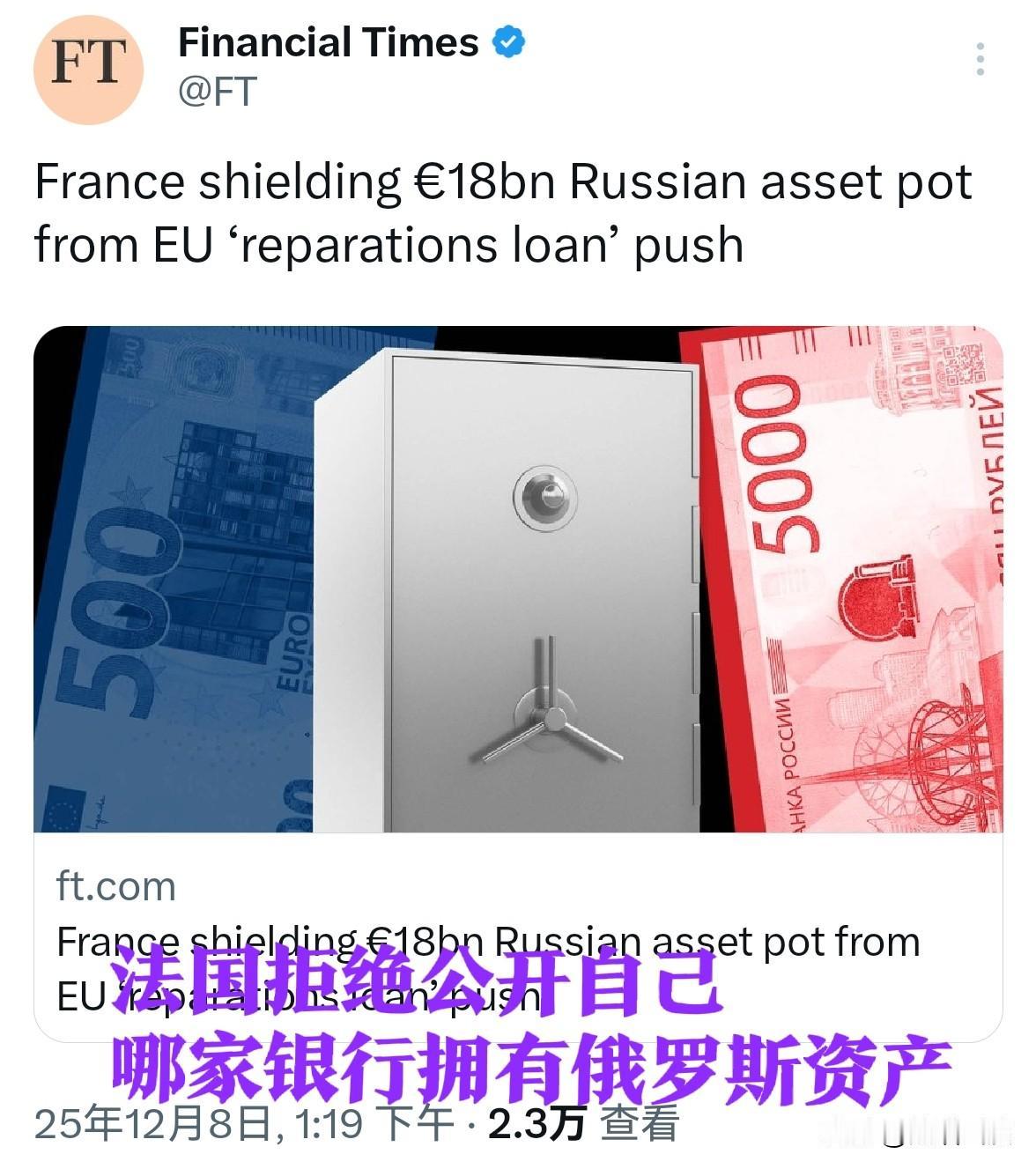 欧洲现在无论作为一个整体,还是个体,他们的思维都很危险,搞不好有一天会废了自己。 欧盟现在不断如飞蛾扑火般,疯狂尝试如何把俄罗斯冻结资产掏出来,但没有一个成员愿意承担一分未来债务的风险。 法国同样是个欧盟的缩影。嘴上嚷嚷着欧洲要给乌克兰打钱,然后捂着在法国的俄罗斯冻结资产(180亿欧)不许人知道(拒绝公开资产哪家法国银行拥有),同时还在每年支付5亿欧起步的利息给俄罗斯。 欧洲不会因俄罗斯或者美国而灭亡,纯纯是自己的前瞻后顾与双重标准会在某一天搞废自己。