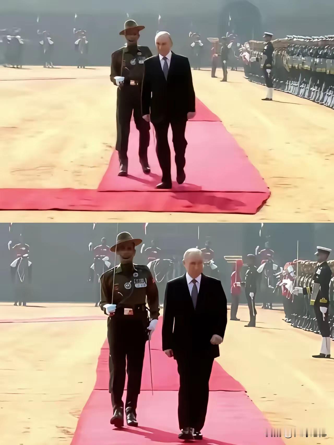中国红毯 vs 印度红毯 上周五印度总理莫迪为普京举行了隆重的欢迎仪式。令人惊奇的是,印度总统府地面居然没有被硬化处理,全是黄土,一刮风尘土四扬,就连红毯都是新旧拼接,颜色深一块浅一块,每块都不一样。 心疼普京一分钟。