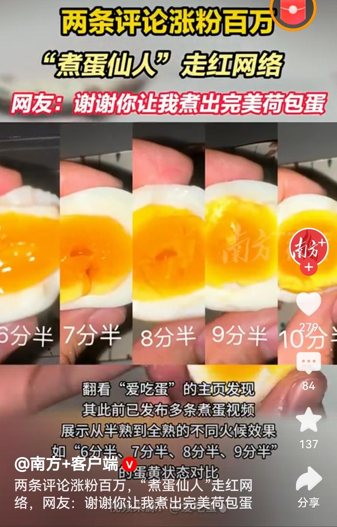 抖音“煮蛋仙人”两条评论涨粉百万这“煮蛋仙人”也太会了!两条评论就精准戳中大家的做饭痛点,把普通煮蛋变完美,实用又暖心~这种接地气的干货分享,涨粉百万真的实至名归,以后煮蛋有救了![比心][比心][比心] 抖音评论精灵 评论打卡任务