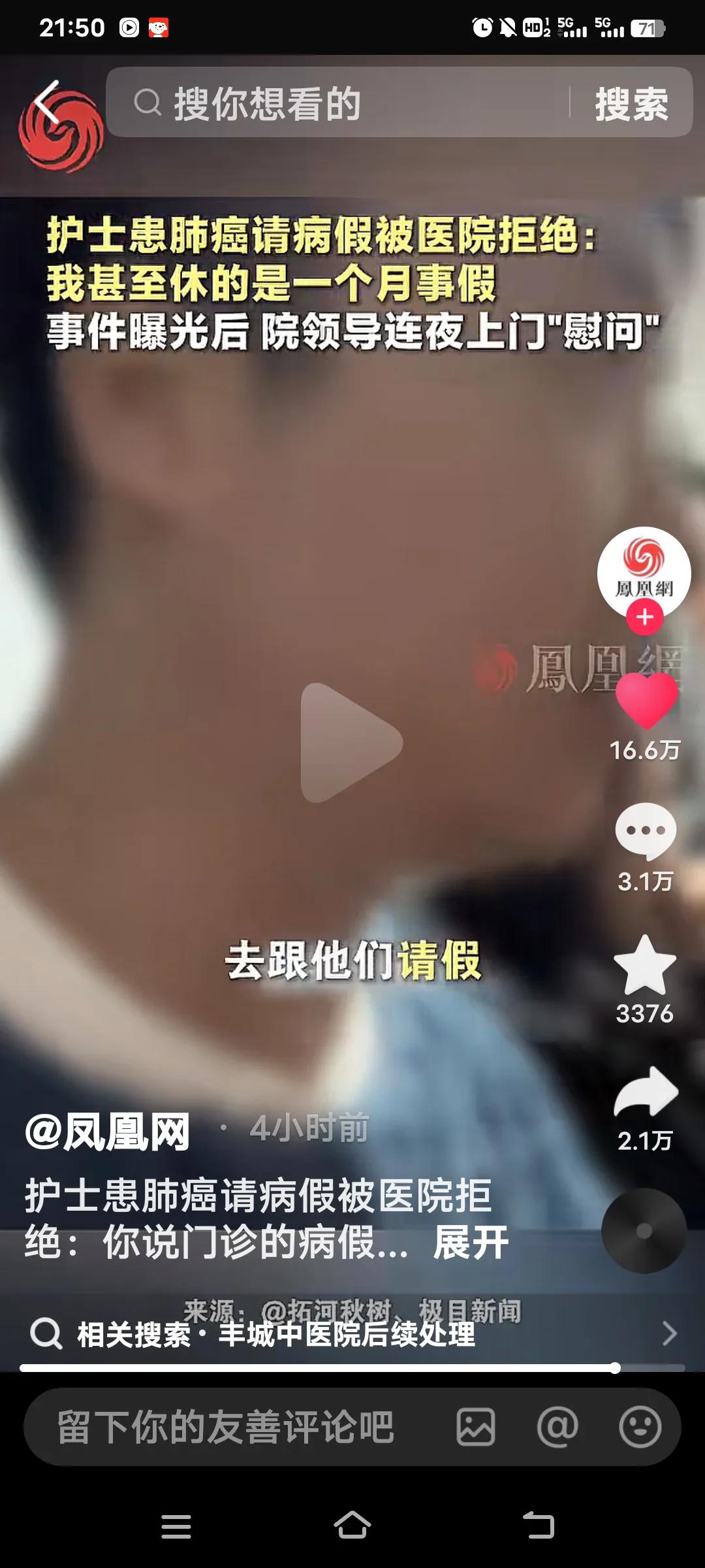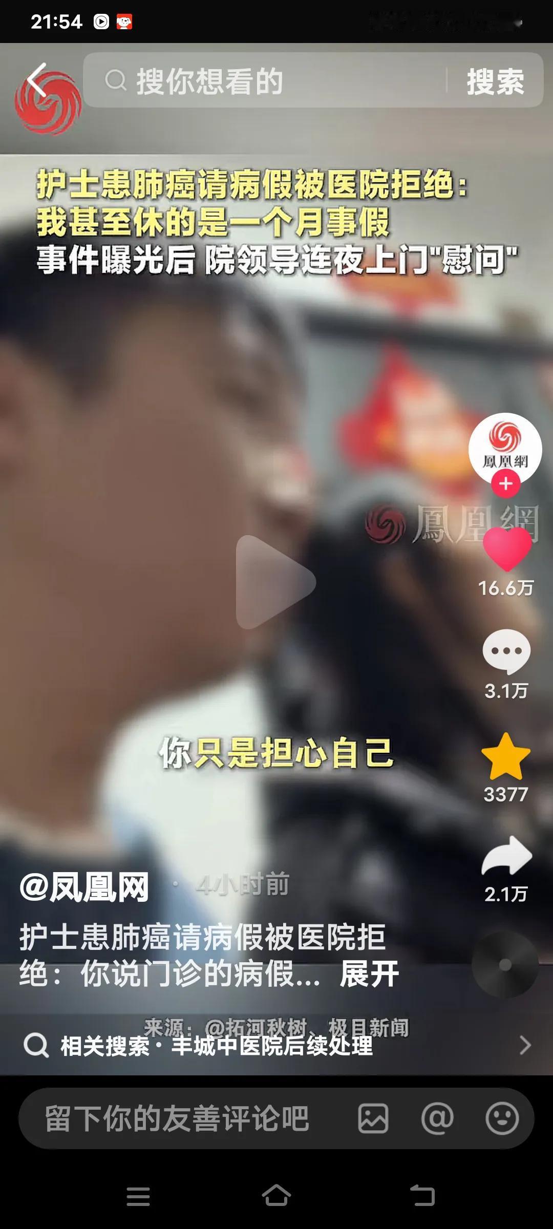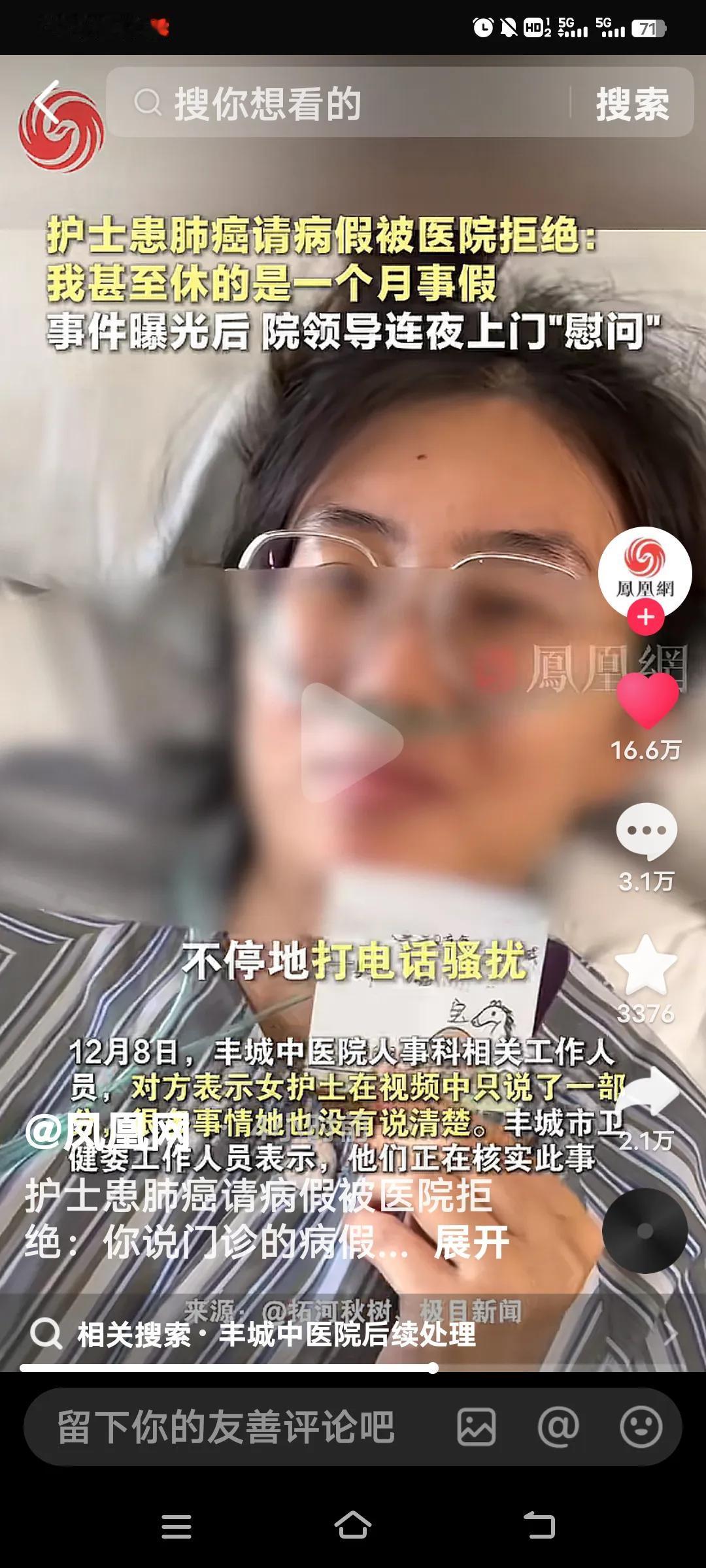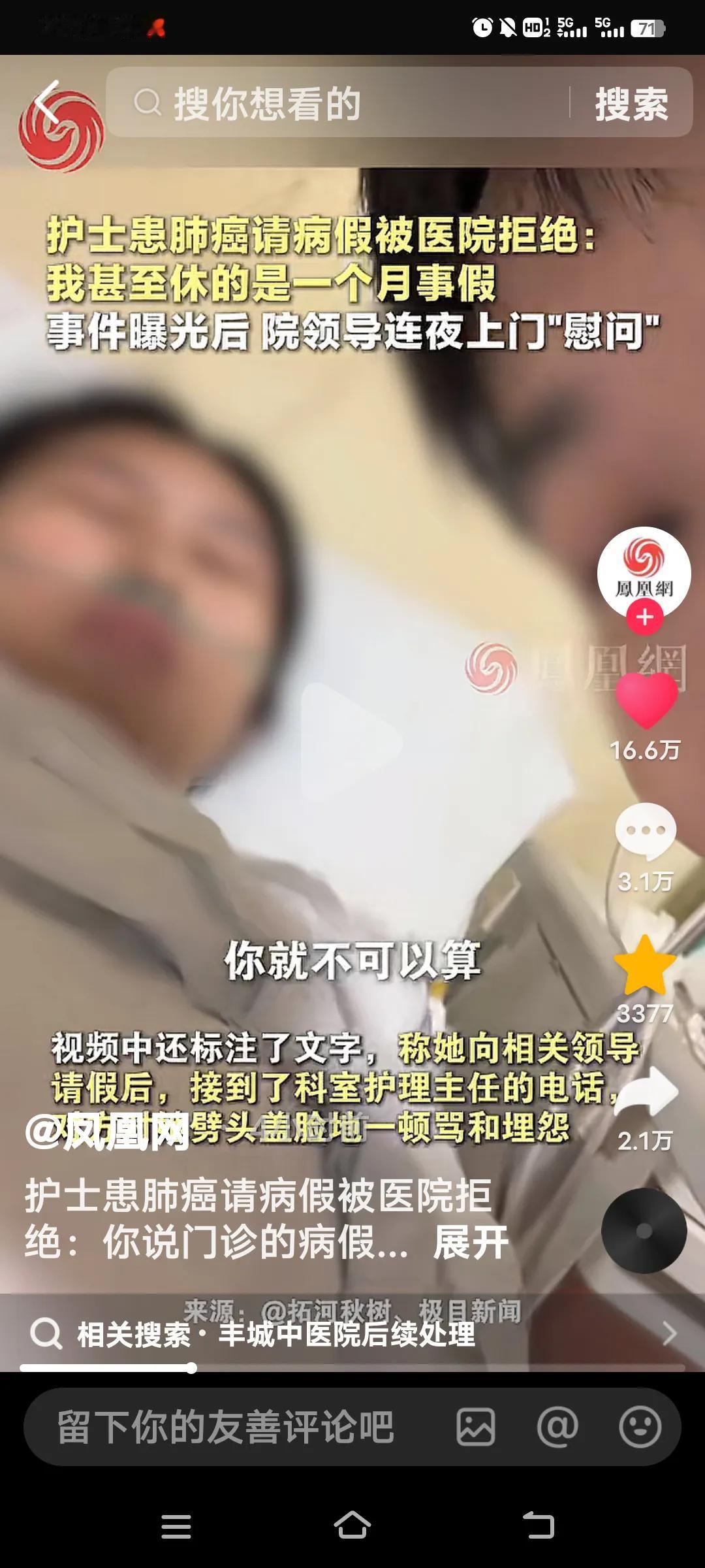 这也太不合理了!护士患肺癌请假,竟被医院拒绝,而且休一个月假还按事假处理! 这位患病护士在丰城中医院工作了五年,就算没功劳也有苦劳。护士说自己身上烂了两个洞,反问“我还能上班吗”。事件曝光后,医院领导上门“慰问”,还在凌晨12点打电话骚扰。这哪里是关心病人,分明是为了自己!简直太奇葩了! 这可不是普通的头痛感冒,是肺癌啊,难道非要让她“战死沙场”吗?一点怜悯之心都没有!这样的医院领导必须严惩,怎么能做出如此荒唐之事!肺癌医生 职业性肺癌 请病假理由