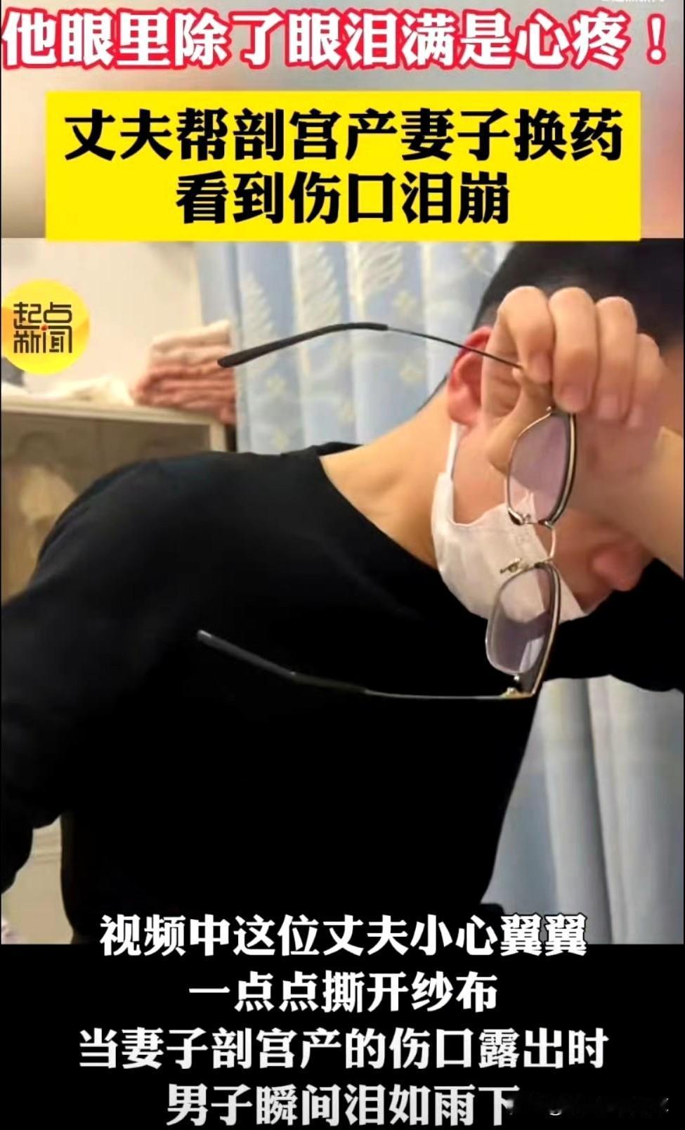 估计这位山东丈夫也想不到吧。 自己只是想着帮出院四天、行动不便的妻子换个药,结果纱布刚揭开一角,看着那道剖宫产伤口,眼泪就止不住往下掉。 他本是个顶天立地的大老爷们儿,再难的事儿都能扛,可真当亲眼瞧见妻子为了生孩子受的罪,心里那股心疼根本藏不住——手伸到半途又停下,轻声问“会疼吗”,得到回应才小心翼翼一点点撕开纱布,露出伤口的瞬间,他的手指忍不住发抖,赶紧摘下眼镜用袖子抹掉眼泪,动作却始终放得极轻。 都说新手爸爸手忙脚乱,他倒好,刚冲完奶粉就赶来帮忙,给宝宝喂奶换尿布样样在行,照顾妻子更是细致入微,哪像刚当爹的生手。妻子悄悄用手机记录下这一幕,发到网上后,网友们纷纷直呼“又一次相信爱情”。 这世上哪有什么轰轰烈烈的爱情,不就是这种藏在细节里的心疼,是怕你疼的谨慎,是默默扛起责任的担当,是把你真正放在心上的本能反应吗?