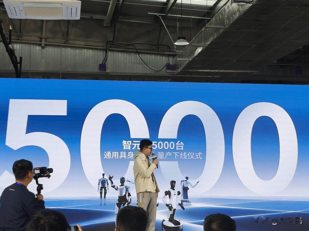 今天来智元上海机器人量产工厂,参加智元第5000台人形机器人量产下线仪式。 5
