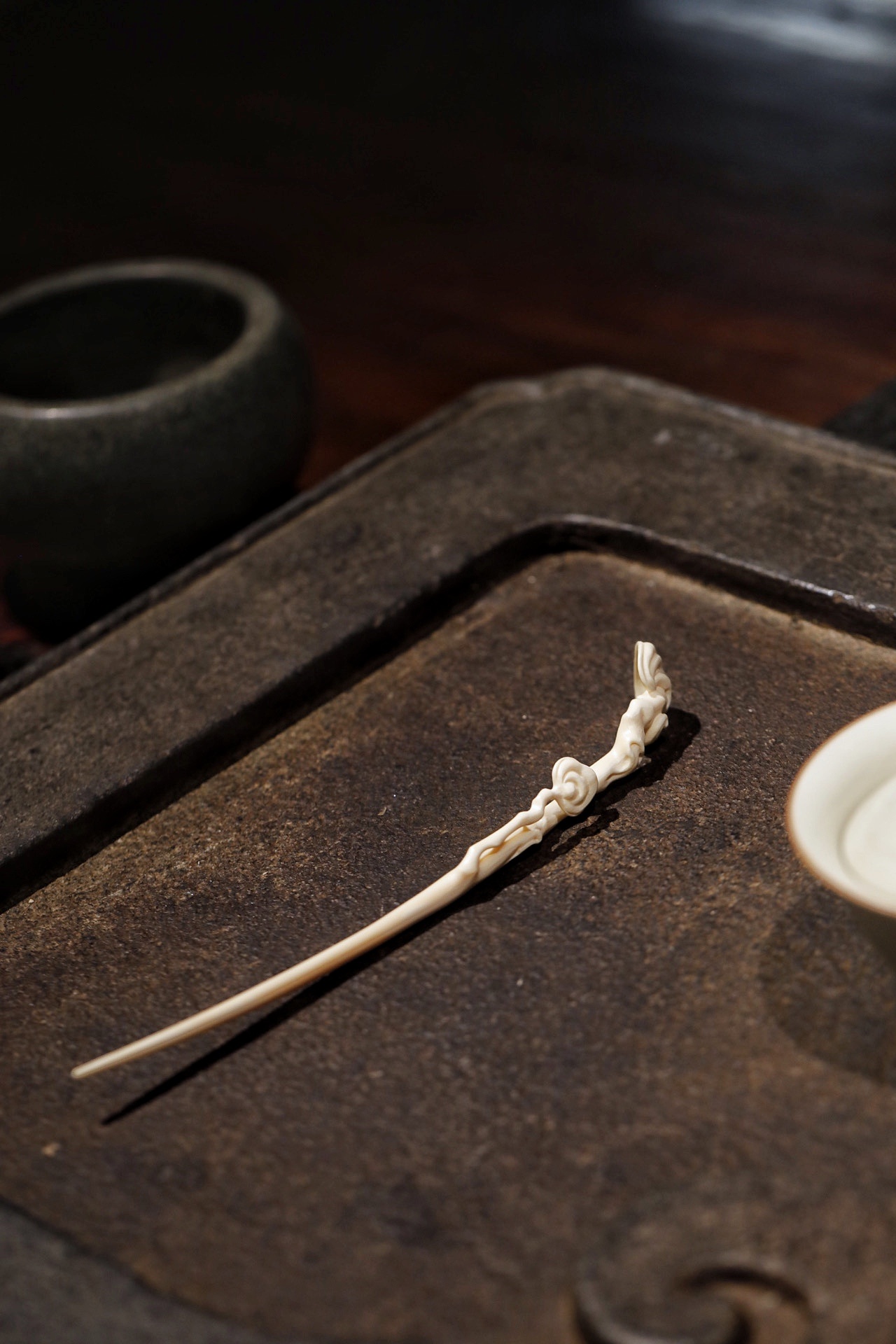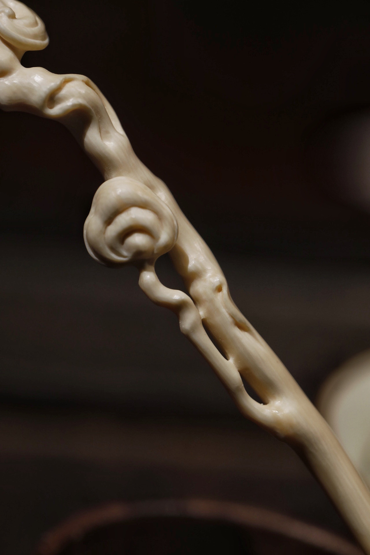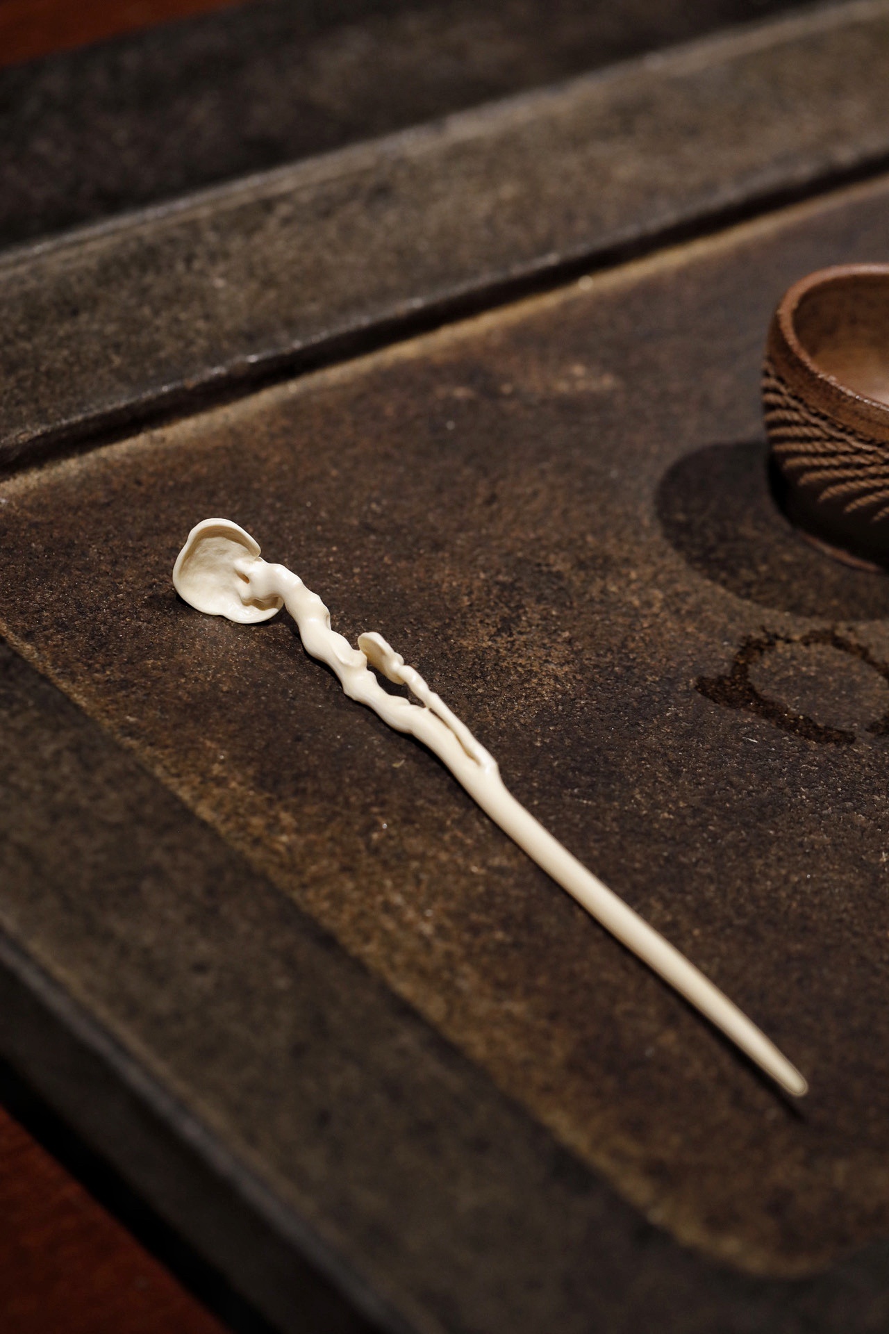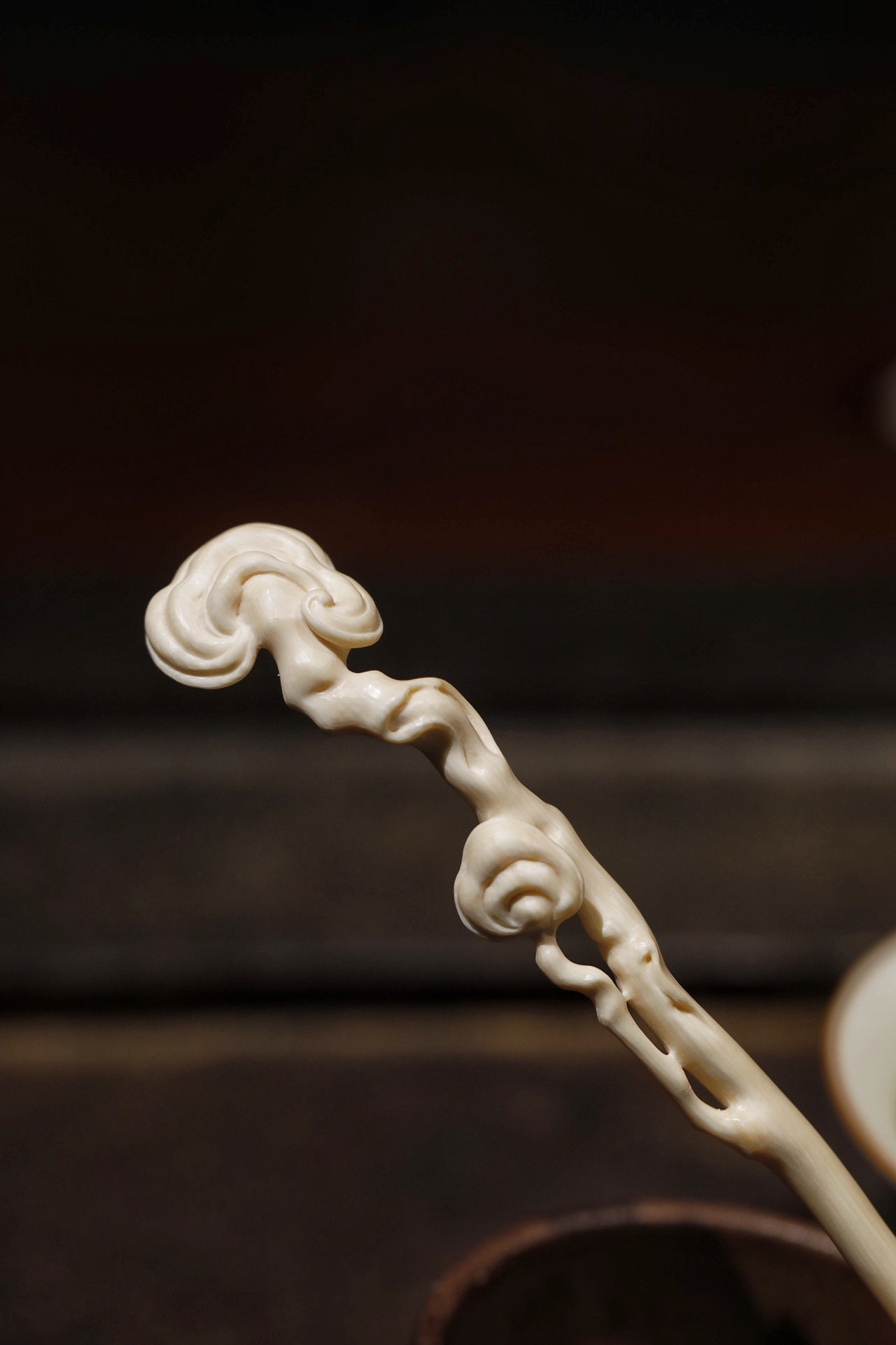 猛犸|灵芝发簪整料雕琢,灵芝纹婉转灵动,料质莹润如脂,簪身纤细雅致,绾发藏韵。2