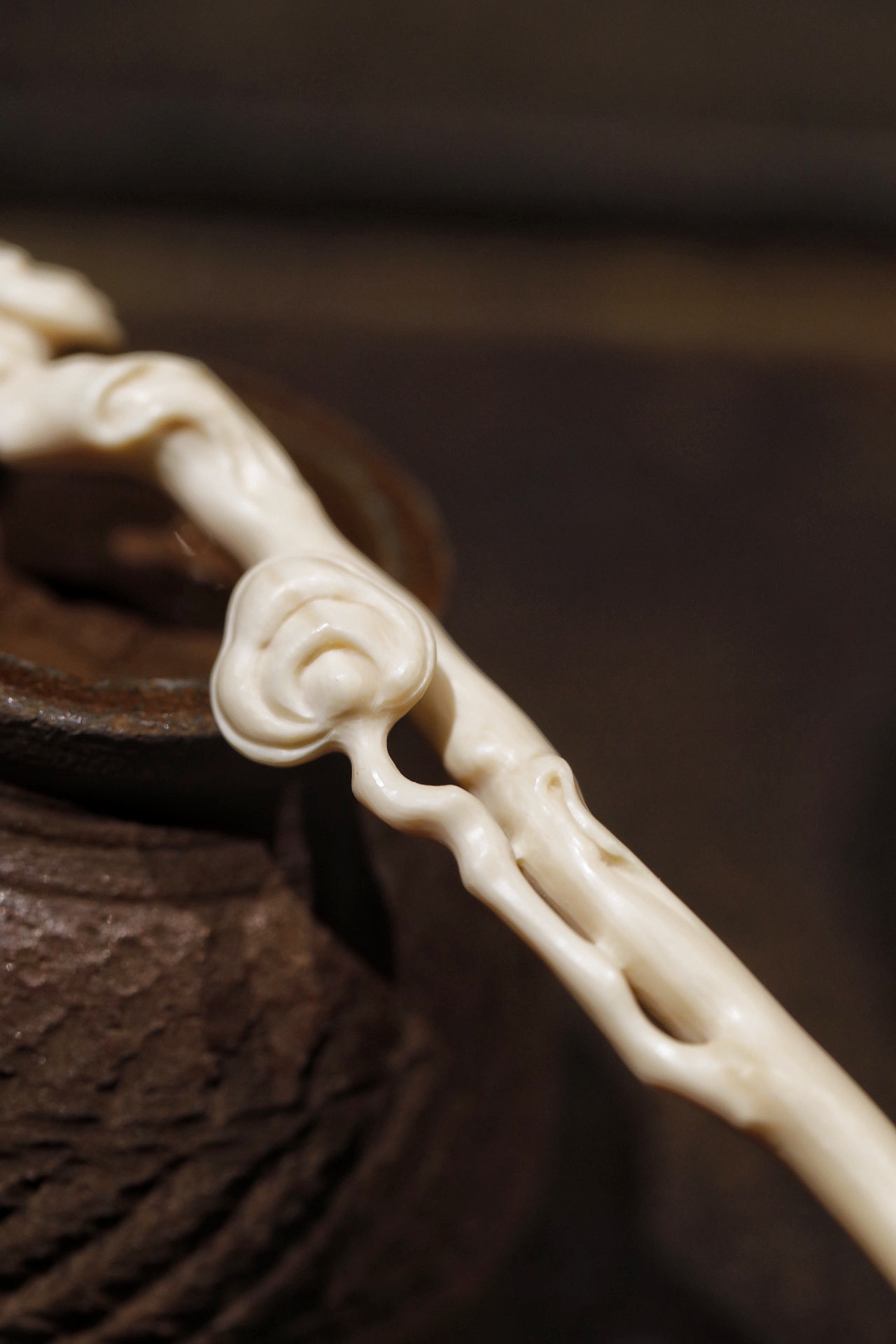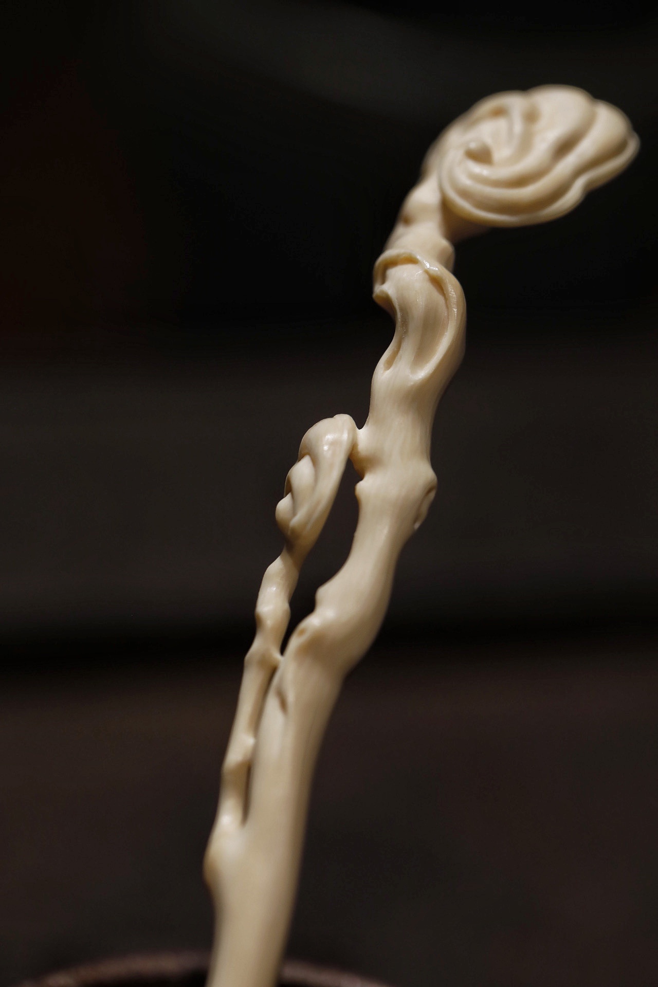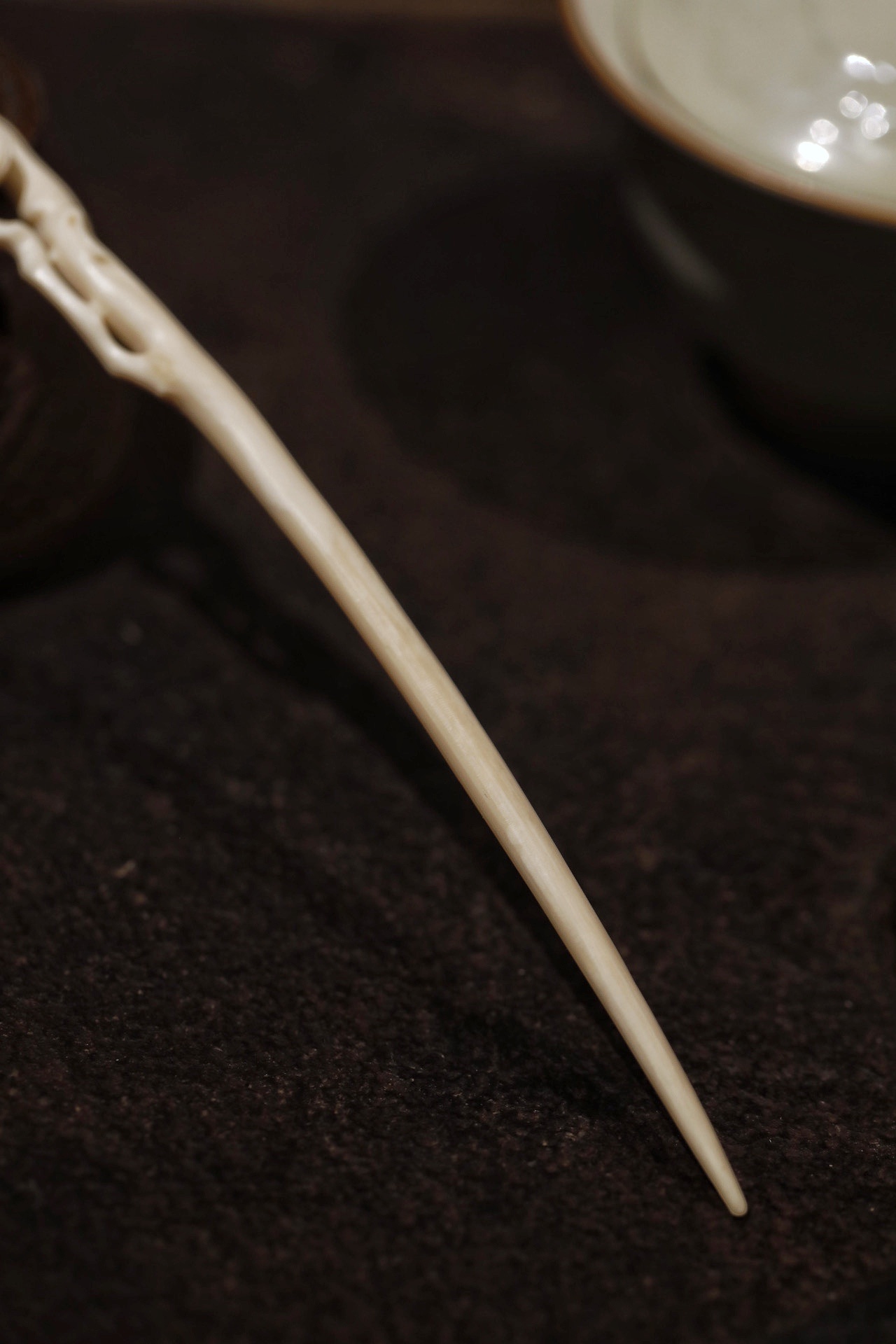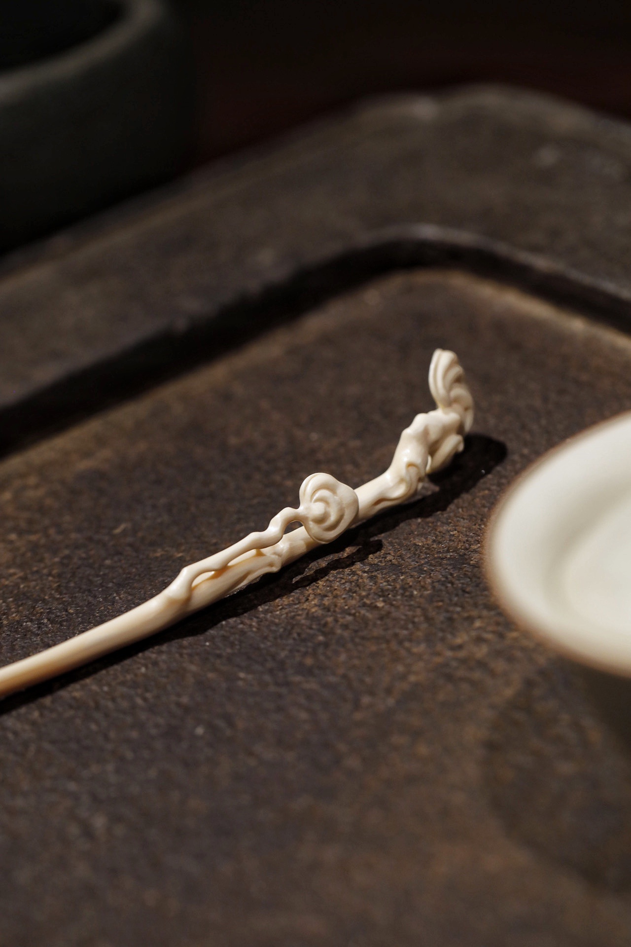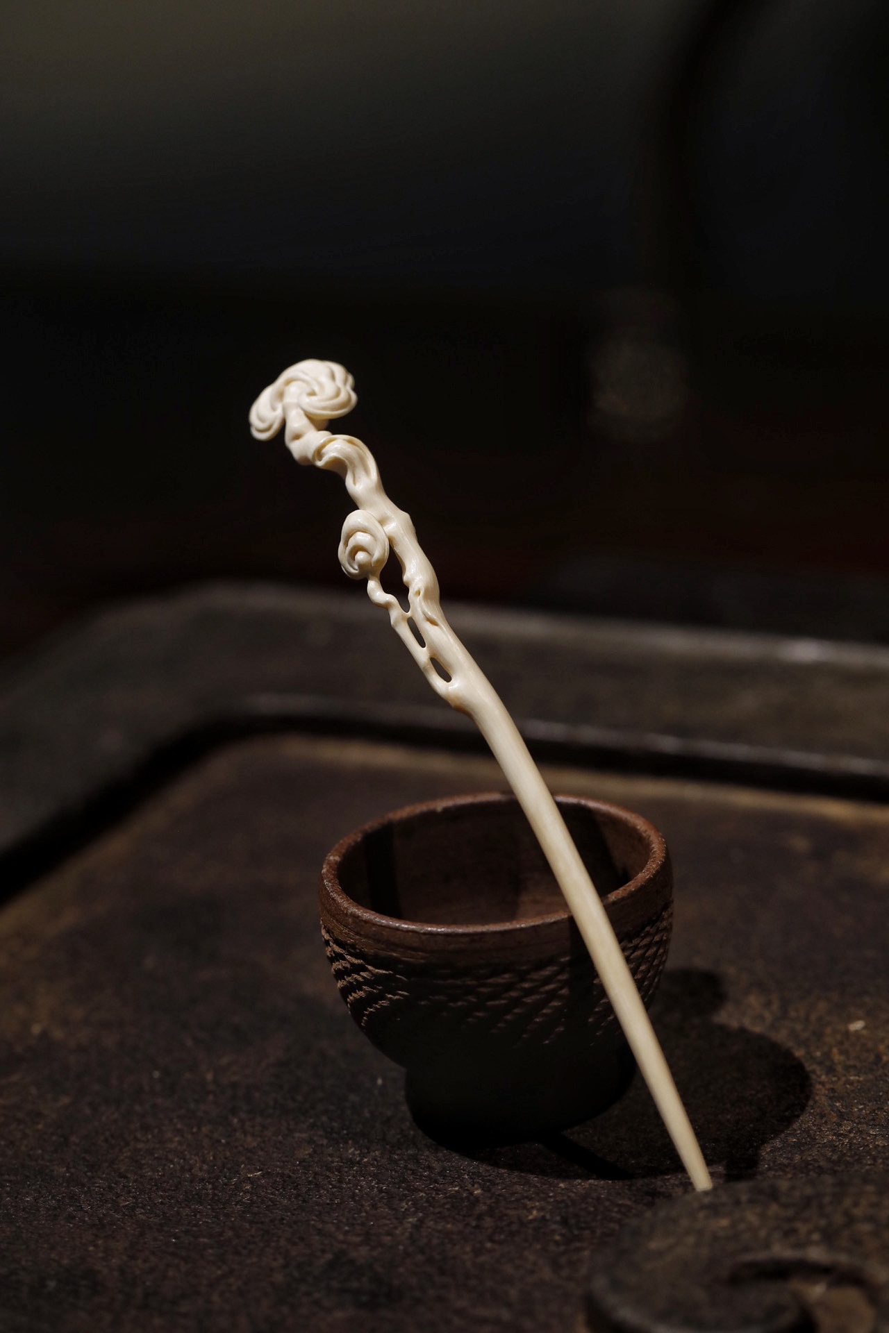 猛犸|灵芝发簪整料雕琢,灵芝纹婉转灵动,料质莹润如脂,簪身纤细雅致,绾发藏韵。2