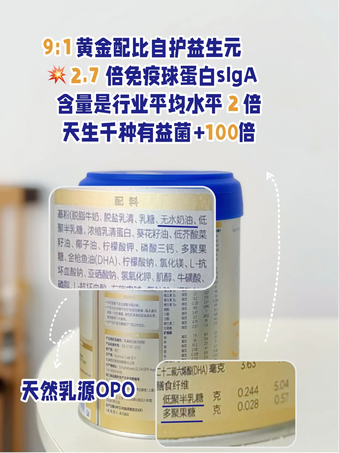 🔹9:1黄金配比自护益生元设计是爱他美的全球销冠配方,含量达到了9g/L,高于行业平均水平的2倍‼️ 能帮宝宝肚肚有益君➕100倍,还有2.7倍sIgA,就像给肚肚安装了一个保护罩,从内到外激发宝宝的自护力;而OPO则是帮助关键营养的吸收,营养吸收到位了,肉肉自然长得快~