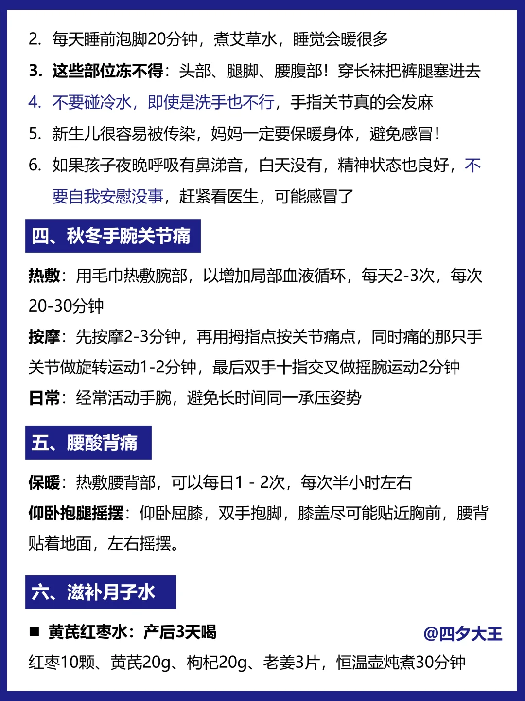 ⭕️秋冬坐月子,谨记5点: