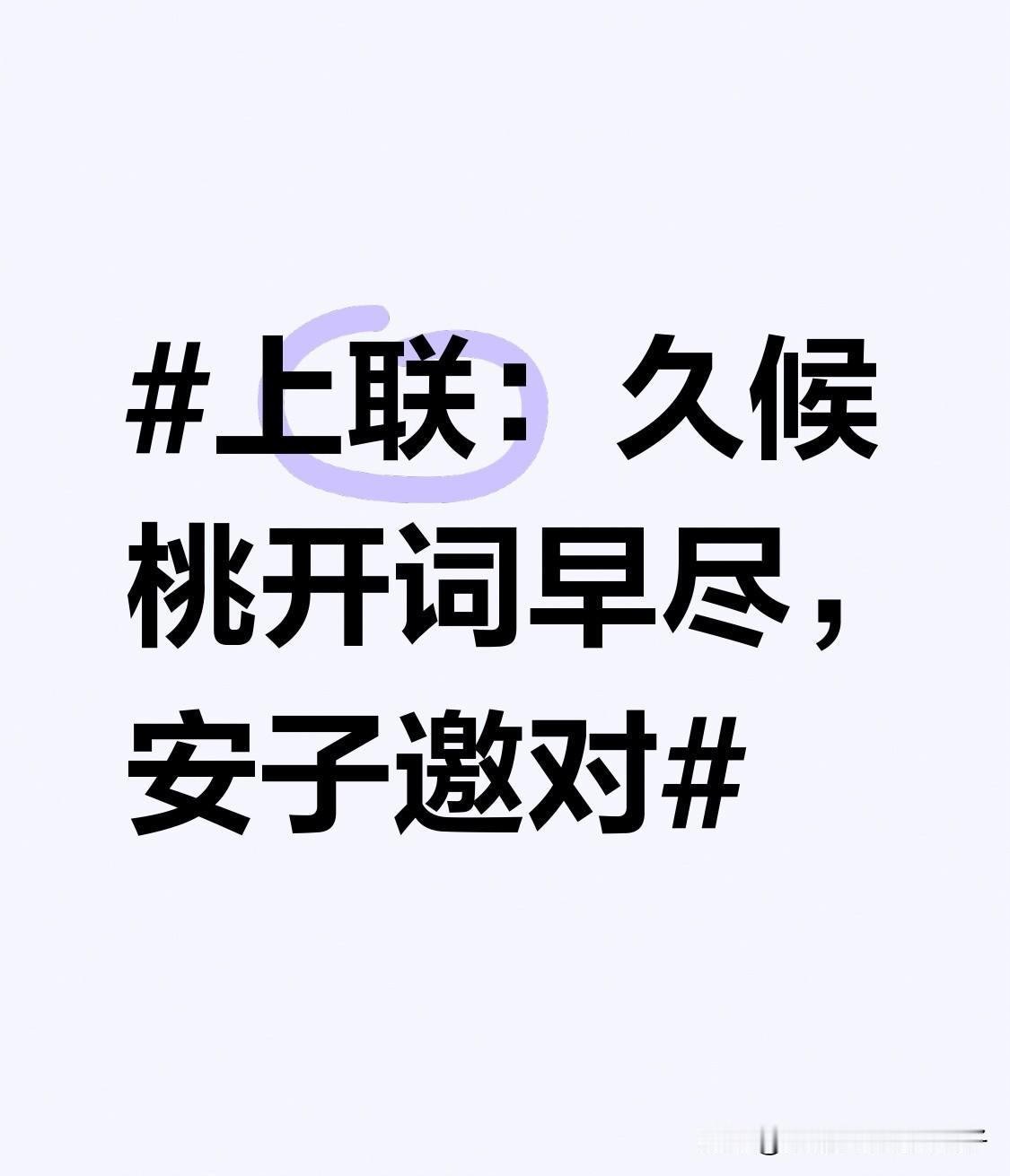 看到“久候桃开词早尽”这个上联,感觉韵味十足又满是怅然。“久候”等了那么久,“桃