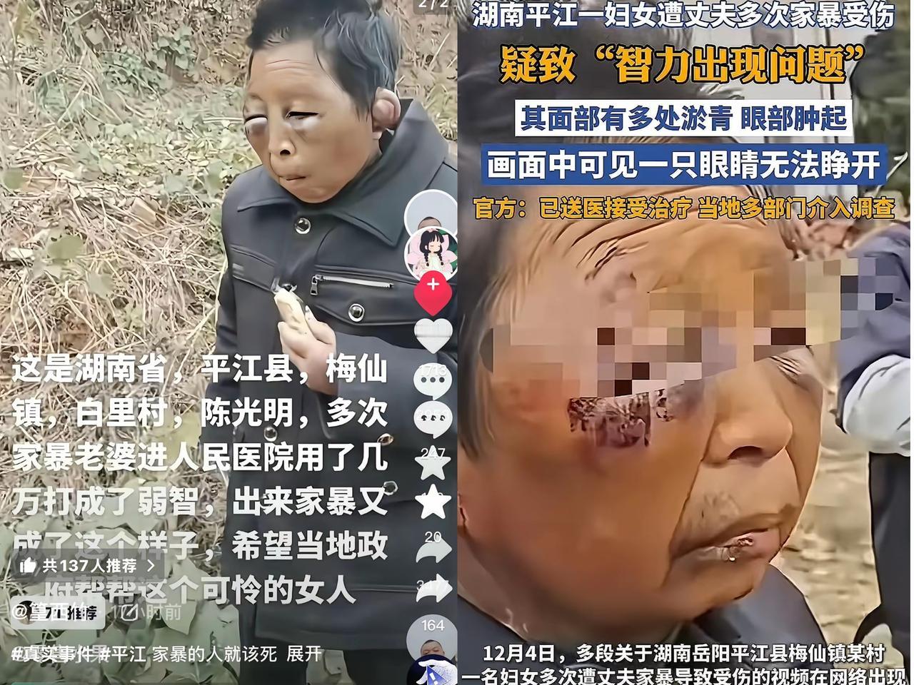 家人们,看了湖南这位阿姨的遭遇,我真是气得不行!几十年的家暴,被打成“饺子耳”,甚至成了智障,这丈夫简直太可怕了!阿姨被打得鼻青脸肿,左眼失明、肋骨断了三根,精神也受影响,而施暴者还不好惹,想想都让人不寒而栗。看到阿姨穿着不合身衣服,眼神木讷无助,我心里特别不是滋味。 家暴真的只有零次和无数次,这几十年的折磨,今天才被大家看到。好在当地多部门介入,阿姨也送医了。咱得明白,家暴不是家丑、家务事,是违法的,必须制止! 咱每个围观的人都不能沉默。大家说,对于家暴是不是得零容忍?
