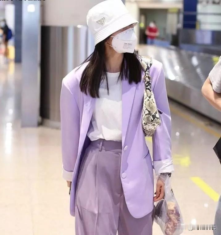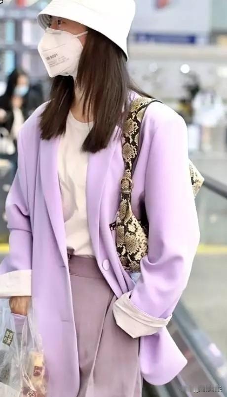 【周雨彤紫咖撞色杀疯了!网友:这姐的时尚外挂开太猛】 周雨彤这波机场造型直接