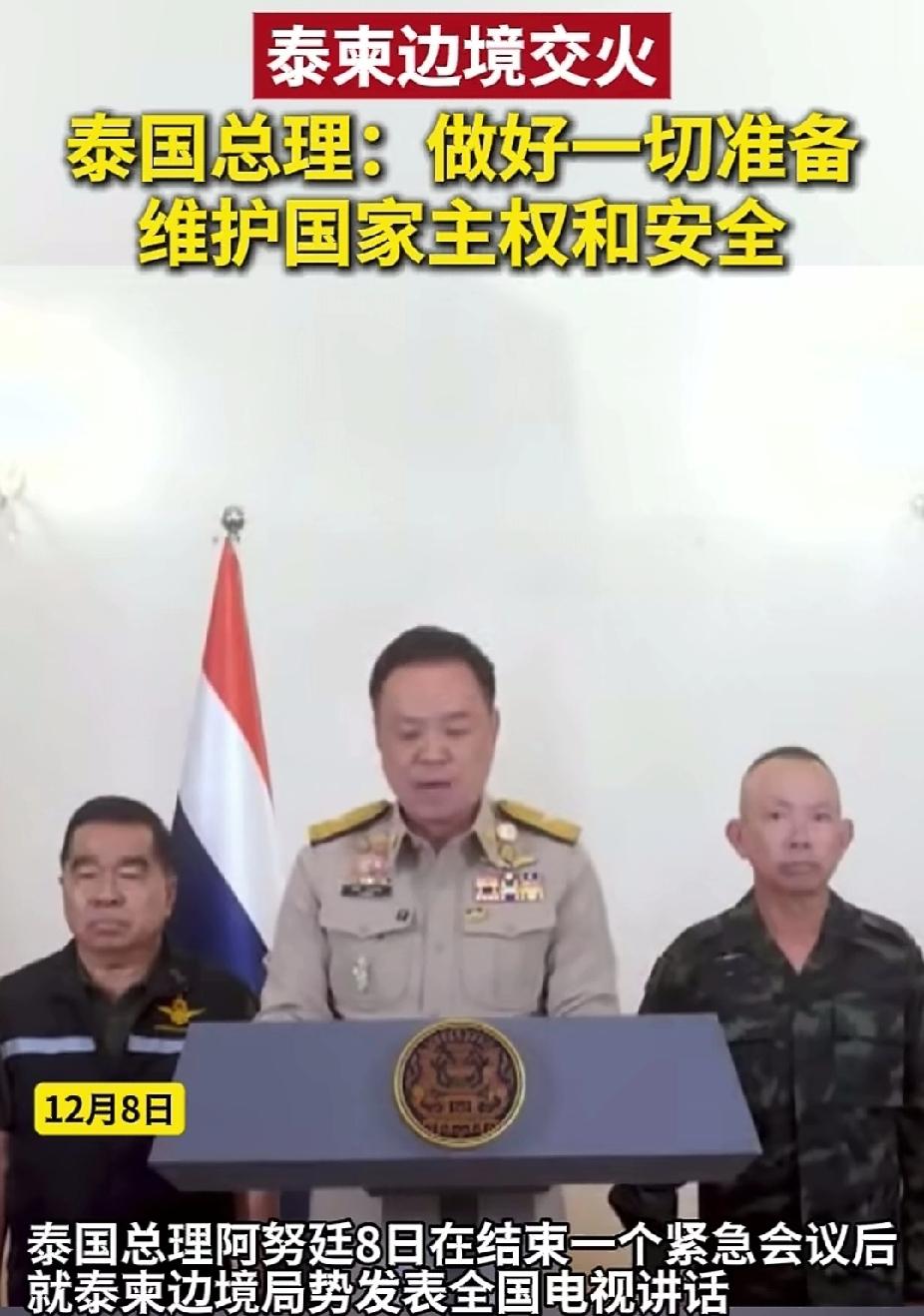 洪森又炮制了一个“视频门”! 洪森眼看形势不妙,又旧计重演。想把当初利用“电话门”一计,把佩通坦拉下总理宝座一计,用到现任泰国总理阿努廷身上。可惜这次不灵了! 洪森发现,12月7日,柬埔寨边境的火箭炮刚刚开火。泰国军方就出动了F-16战机,对柬埔寨的前沿炮所发射精确制导炸弹进行强大的火力压制。 结果不到几个小时,洪森就发现这回他是捅了马蜂窝。在泰军方F-16战机面前,柬埔寨陆军的BM-21冰雹多管火箭炮,就等于小米加步枪在拥有强大火力前面的枪关枪。 于是洪森急了,马上命令所有一线部队必须保持耐心,不要还击泰军方所有的进攻,从而巧妙的把“开第一枪的责任”推到泰国方面。并指责泰国军方不讲“武德”。洪森的意思就是说,柬埔寨才用BM-21冰雹多管火箭炮向泰方开炮,泰方也应该用火箭炮还击柬方才对。怎么能一上来就动用F-16战机呢。 洪森眼看用硬实力干不过泰方,由是又心生一计,发一段16秒的视频爆料阿努廷为了在明年3月下旬举行的大选中的胜算。利用发动对柬埔寨的战争来增加自己的权威,从而赢得选票。 但是,洪森这次发的视频,对阿努廷根本没有造成什么杀伤力。洪森这次发的视频内容大概是:在阿努廷当时还是任泰国的内政部长期间,有一次阿努廷到柬埔寨访问,与柬埔寨拜林省省长班斯雷蒙的密切接触。除了视频,还有阿努廷和夫人前往柬埔寨塔卡奥县一座寺庙祈福的未注明日期的照片。 洪森就利用该视频内容来攻击阿努廷。称阿努廷之前和柬埔寨方面有着友好的关系。可阿努廷当选总理后,竟然一点“旧情”也不念,一下子就动用F-16战机打击柬方。怎么能让之前的友谊小船说翻就翻了呢。 洪森最终的目的就是:通过该视频来说明,这样一个“一个没有人情味,不重视友情”的人,根本不配当泰国总理。 结果泰国方面看到洪森的该段视频后,直接用两个字来回应洪森:“荒谬”! 作为一国官员,出访另一个国家,一般情况下本来就是要与对方官员拉好关系。看来洪森这次是“病急乱投医”了! 洪森的视频发出后,更惹得泰国总理阿努廷大发雷霆。阿努廷在8日下午强势表示: 宣布不会再与柬埔寨谈判! 正如泰国外交部发言人尼康德8日说:柬埔寨总是反复采取“先挑起冲突、事后又否认"的惯用伎俩,不断实施包括在泰国境内埋设地雷等挑衅行为。柬方一边对外营造呼吁和平、克制的形象,一边采取相反行动、违反停火协议及泰柬和平联合声明。 看来这次泰方是忍无可忍了,估计泰方这次是要彻底的把柬方打到毫无还手之力时才肯停手了。