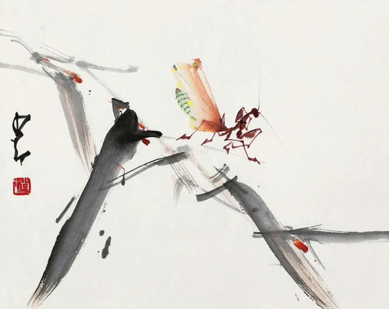 🖋️ 看赵少昂的画,总被那笔锋的“矛盾”迷住—— 枯笔如老藤裂石,勾出的枝桠带着皴裂的劲,像经了三冬的风,硬得能敲出响;转瞬间,润墨又似春雨漫过,晕染的花叶裹着水汽,嫩得能掐出汁。 他画鹰,喙尖用焦墨勒出锋芒,枯涩如铁,偏在翅根晕一片淡赭,像夕阳扫过羽毛的暖;画兰,叶尖是“飞白”的干笔,透着股孤高,叶底却用湿墨晕开,藏着泥土的润。最妙是画虫,触须用枯笔轻扫,细如游丝却挺劲,虫身却以润墨点染,圆融得像沾着晨露,刚柔相济间,仿佛下一秒就要振翅飞走。 这“枯”不是干涸,是骨;“润”不是泛滥,是肉。赵少昂把岭南的烈日照出的焦,和珠江的水汽养出的柔,全揉进了笔墨里。一笔枯润转换,藏着自然的呼吸,也藏着他对生命的理解——刚硬里要有柔软的余地,温润中得带几分倔强的骨。 看他的画,像触摸岭南的晨与昏:晨露的润,午阳的燥,都在笔墨里和解了。 赵少昂 枯润相济 笔墨风骨