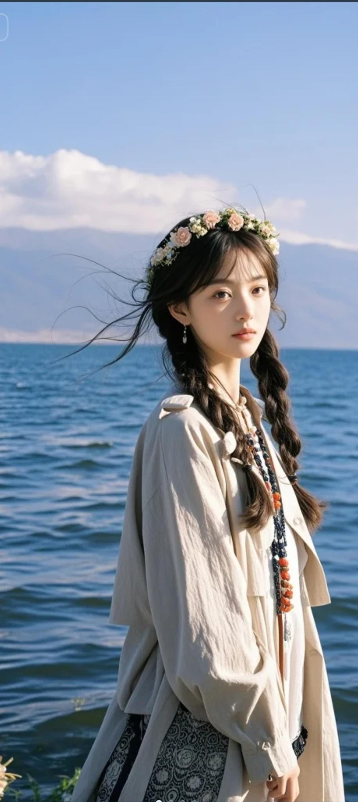 夜晚街头的温柔少女,蓝色项链点缀,美得令人心动!💙✨