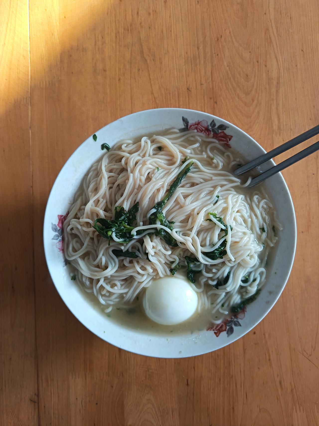 早上起来 一杯水 一碗面 一个水煮鸡蛋 生活就是这样简简单单 不求山珍海味 只求平安一生