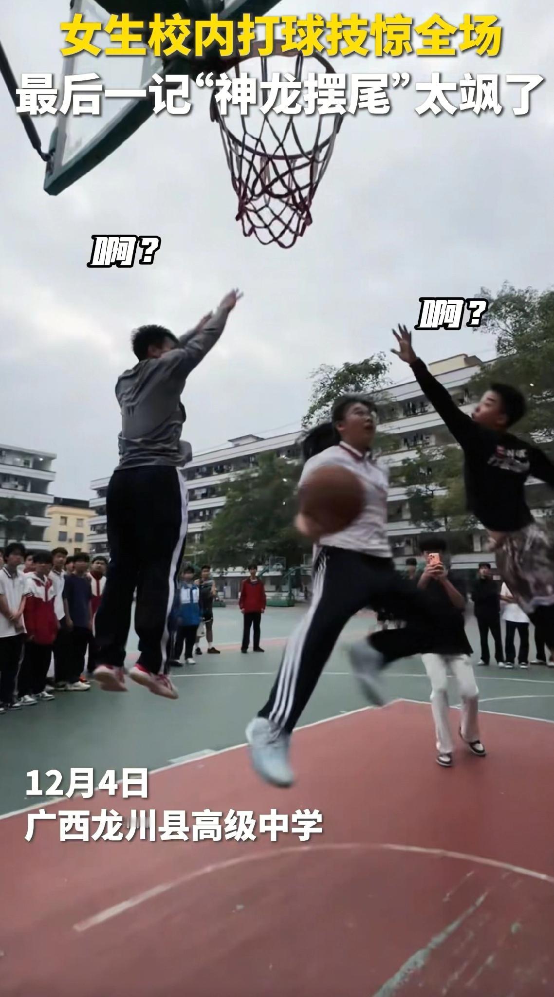 万万没想到! 近日广西一伙男生正在球场上打篮球, 一位女生走过来说让我试试吧, 围观的其他学生小声的说,就她这样,个子这么矮,还戴着近视眼镜,会打篮球吗?结果女生一阵操作让围观的人彻底傻眼! 视频中,只见篮球在女生的手中十分听话,她运球的动作行云流水,风驰电掣挡也挡不住,超强的球技直接燃爆了现场! 各种“神龙摆尾”“二段式”投篮,直接燃爆现场,男生们惊得目瞪口呆。 这女生,外貌普通,却有着让人惊叹的篮球技术。都说人不可貌相,在她身上体现得淋漓尽致。有天赋还在学生阶段,好好培养,未来说不定能在篮球界大放异彩。 生活中,是不是也常以貌取人,错过不少“隐藏高手”?大家身边有没有这种,一出手就惊艳众人的人,快来分享分享。
