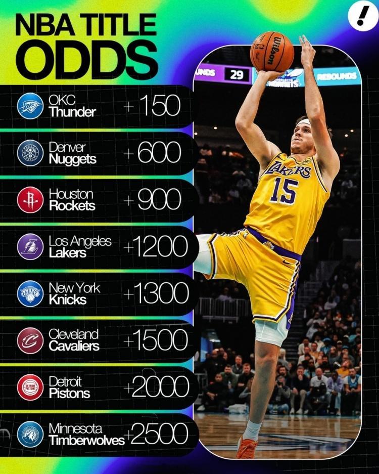 最新夺冠赔率更新:雷霆 +150掘金 +600火箭 +900湖人 +1200