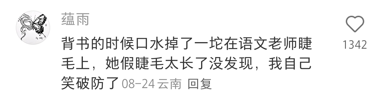 背书的时候,口水掉了一坨在语文老师睫毛上