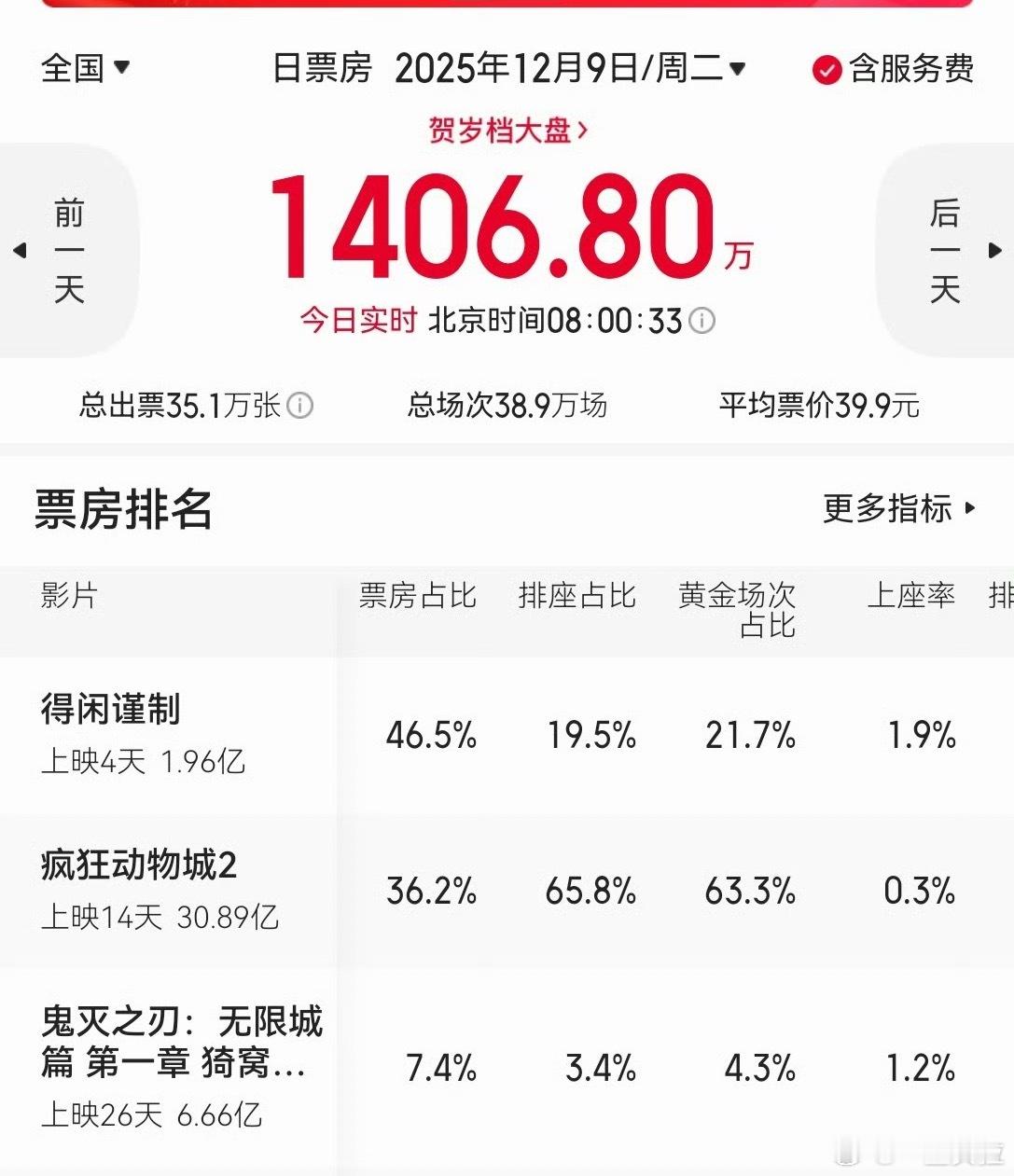 扣扣搜搜的 能给咱多加一点黄金场吗得闲谨制排片占比上涨