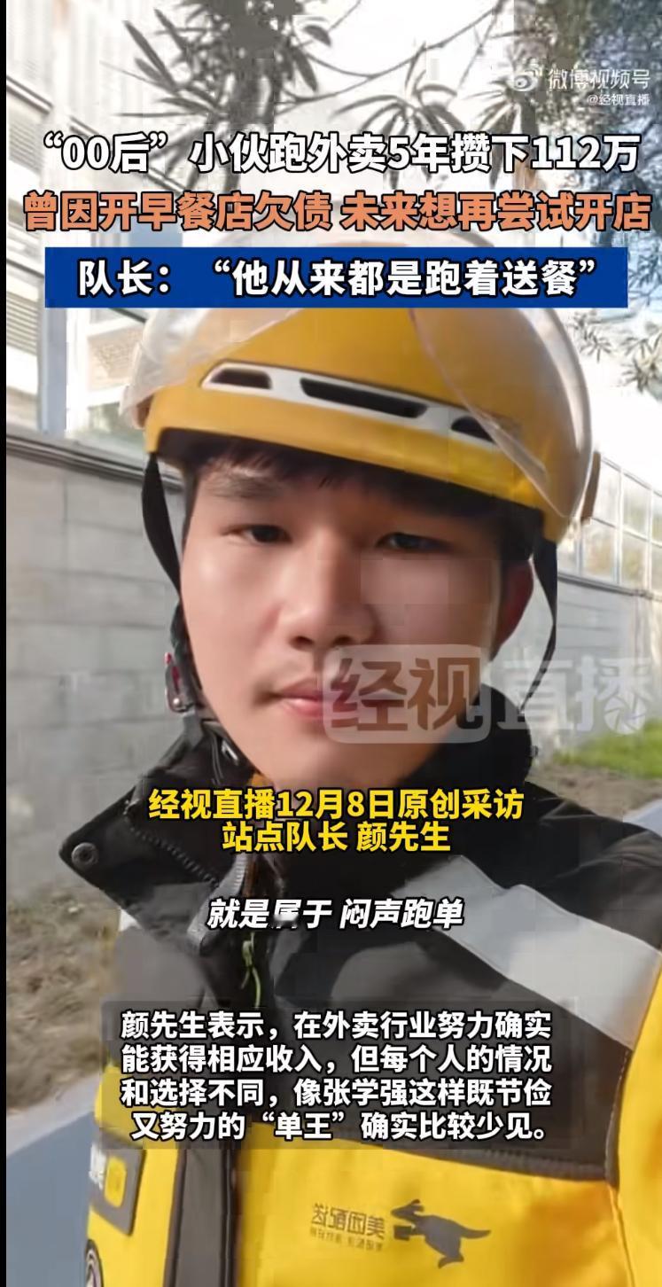一位00后外卖骑手张学强引发全网热议。这位25岁的福建漳州小伙,在上海送外卖5年,总收入140万,扣除开销后竟攒下112万!他日均送单83单,总里程32万公里,相当于绕地球8圈;每天工作超12小时,月开销仅三四千。这惊人的数字背后,是他为偿还创业失败欠下的5万债务,用极致的拼搏与节俭堆砌出的“血汗存款”。消息一出,有人惊叹“逆袭神话”,也有人质疑“不可复制”,掀起一场关于奋斗、生存与时代的激烈讨论。 这场“百万存款”风暴,撕开了三个残酷的真相。第一,个体的极致努力与时代的红利交织,才催生了这场“奇迹”。张学强能成为“单王”,既靠玩命般的自律——全年无休、跑步送餐、强制睡眠保障体力,也依赖上海的高单量、平台算法的“激励”机制。但这份成功无法批量复制:多数骑手日均仅40单,且面临算法压榨、健康透支、社会保障缺失等困境。第二,底层劳动者的生存逻辑,是“用命换钱”的无奈选择。类似案例中,邹小容为救子每天跑80单,五年跑坏4辆电动车;无数骑手在寒暑中穿梭,摔倒、投诉、车祸皆成常态。他们的“成功”,往往建立在牺牲健康、压缩生活、对抗风险之上。第三,社会对“奋斗叙事”的追捧,常遮蔽了制度性关怀的缺席。当人们为张学强喝彩时,鲜少追问:若没有平台“卷王”机制,若社会保障更完善,他是否不必如此拼命?当“拼命”成为唯一出路,谁该为劳动者的尊严与未来负责? 这场热议,折射出公众复杂的情绪:敬佩与悲悯交织,羡慕与反思并存。我们敬佩他的狠劲与毅力,却也为他五年春节未归、生活在6平米合租屋的孤寂心酸;我们羡慕他的存款,却也深知这背后是常人难以承受的苦行僧生活。更有人开始质疑:当“月入过万”的骑手神话被奉为圭臬,是否掩盖了行业整体的低收入、高风险的真相?当个体用极限奋斗实现“逆袭”,社会是否该提供更多元的上升通道与保障? 血汗铸成的百万存款,既是个人奋斗的勋章,也是时代的镜子。它照见个体的坚韧,也映出制度的缺口。我们不该神话这种“拼命哲学”,但必须正视其背后的生存逻辑。评论区里,期待看到你的声音:你如何看待这种“用命换钱”的奋斗模式?若你身处其中,会选择同样的路吗?社会能为骑手们做些什么,让他们不必如此孤勇? 每一份讨论,都可能成为推动改变的力量——因为,劳动者的尊严,不该只靠血汗浇筑。 (案例来源:经视直播)