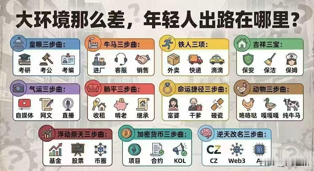 deepseek deepseek给出的年轻人出路,你觉得靠谱吗? 面对当下充满不确定性的环境,年轻人感到迷茫和压力是真实且普遍的。出路并非一条预设的坦途,而更像是在复杂地形中,凭借清晰的认知、持续的适应能力,为自己走出一条路。我们可以从稳住当下、投资未来和重构价值三个层面来思考: 1. 短期:稳住基本盘,在波动中锚定自己 · 核心行动是“确保安全”与“保持流动”。在经济周期中,首要任务是保证个人财务与职业的连续性。这可能意味着,暂时将“梦想”收藏,优先选择能提供稳定现金流和核心技能的工作,哪怕它不那么光鲜。同时,像雷达一样扫描行业动向,保持对新机会的敏感和技能的微调。 · 摒弃“一根支柱”思维。在主业之外,积极探索能带来收入的“第二曲线”,如基于兴趣的技能变现、小成本试错的轻创业或数字经济下的灵活协作。多元的收入结构是抵御风险最实际的护城河。 2. 中期:投资“可迁移资本”,构建反脆弱性 真正的出路不在于找到下一个“风口”,而在于建设自身难以被取代的价值。 · 投资“硬核技能”:深耕一个专业领域,成为解决复杂问题的专家;同时,刻意培养如沟通、项目管理、数据分析等跨行业通用的“软技能”。 · 投资“认知与视野”:广泛阅读,特别是历史、经济、科技领域的读物,理解时代运行的底层逻辑。主动向不同领域的人请教,构建多元思维模型,这能帮助你识别他人忽视的机会。 · 投资“身心储备”:规律运动、管理情绪、培养一项能让自己深度专注并恢复能量的爱好。强大的身心是长期主义的燃料,能让你在逆境中保持韧性。 3. 长期:重新定义“成功”,在价值创造中安放自身 当外部标准变得模糊时,正是向内探寻、建立自己内在坐标系的时机。 · 从“追求热门”转向“创造需求”:关注身边未被很好解决的真实问题(哪怕是微小的),用你的技能和创意去提供解决方案。真正的机会往往诞生于对具体生活痛点的洞察,而非对宏大趋势的追逐。 · 从“被动内卷”转向“主动创造”:与其在存量市场中无限竞争,不如思考如何创造新的价值。利用互联网平台,分享你的知识、见解或创作,哪怕从影响一个小社群开始,这是在积累未来可能兑现的“社会资本”与个人品牌。 · 接受“非线性成长”:放下“几岁就该达到如何”的刻板期待。人生很长,允许自己经历探索、暂停甚至短暂的失败。很多宝贵的路径,是在不断的尝试、反馈和调整中浮现出来的。 重要的心态转变 不必执着于寻找“唯一正确的出路”,而是培养自己在多种可能性中都能活得不错的能力。环境越是充满挑战,那些扎实的技能、清醒的头脑、健康的身体和持久的内驱力,就越是能成为穿越周期的“硬通货”。 将注意力从对“大环境”的焦虑,收回到对“小环境”(即你自身和你能直接影响的小圈子)的建设上。当你通过持续的行动,让自己变得比昨天更有价值一点,更强大一点,你的世界和出路,自然就会清晰、拓宽一点。 历史告诉我们,每一代年轻人都曾在他们的时代经历过“至暗时刻”与“最好时代”的双重叙事。今天的你,不是在寻找一个现成的答案,而是在用你的选择和行动,参与书写这个答案。 热门话题 当代年轻人困境