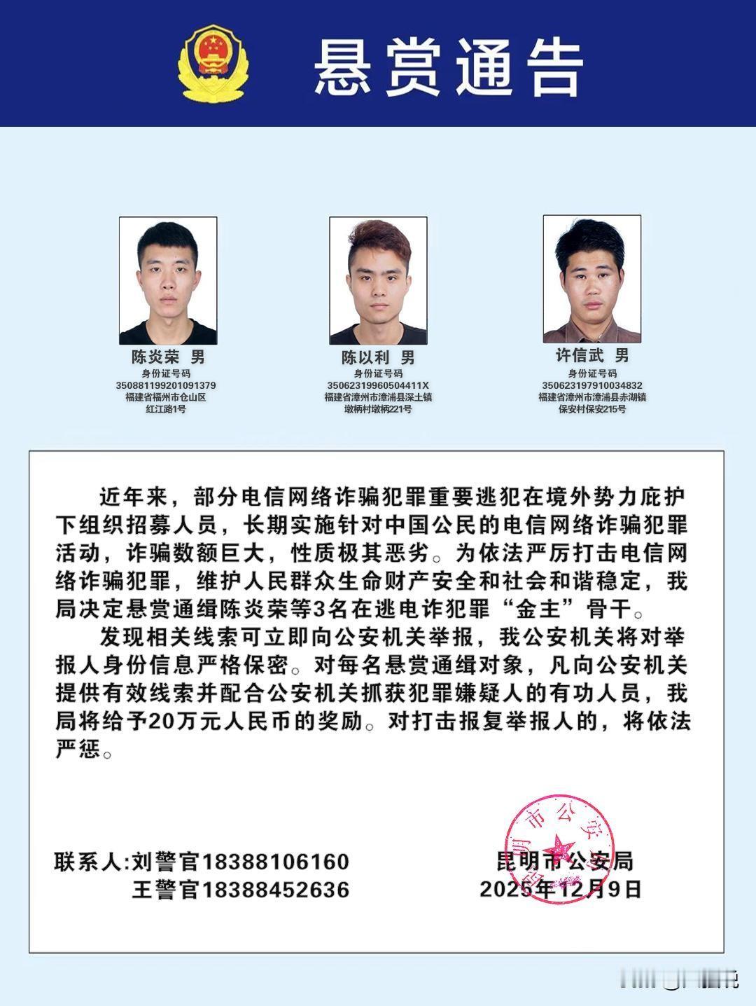 这真的是大快人心啊!看来这次是动真格的了,一定要将那些电诈分子一网打尽才行,绝对不能够放过他们。 近日,公安机关通缉100名涉电诈在逃人员。 这真的是太有震慑力。 也希望这些被通缉的人员赶紧投案自首。 不要有侥幸心理,自首是唯一的出路。 坦白从宽抗拒从严。 如果被抓住的话,一定要给予严惩。