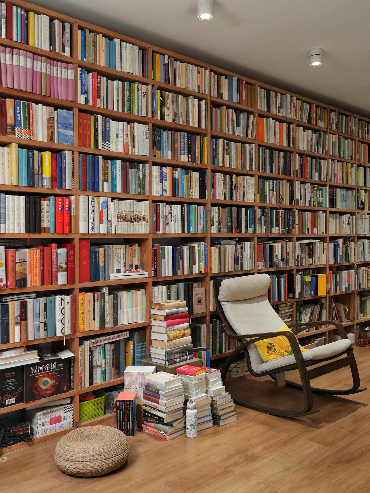 这是一套有着1000多本书的家,房主预计用1年时间读完,并且还会在随时的添置