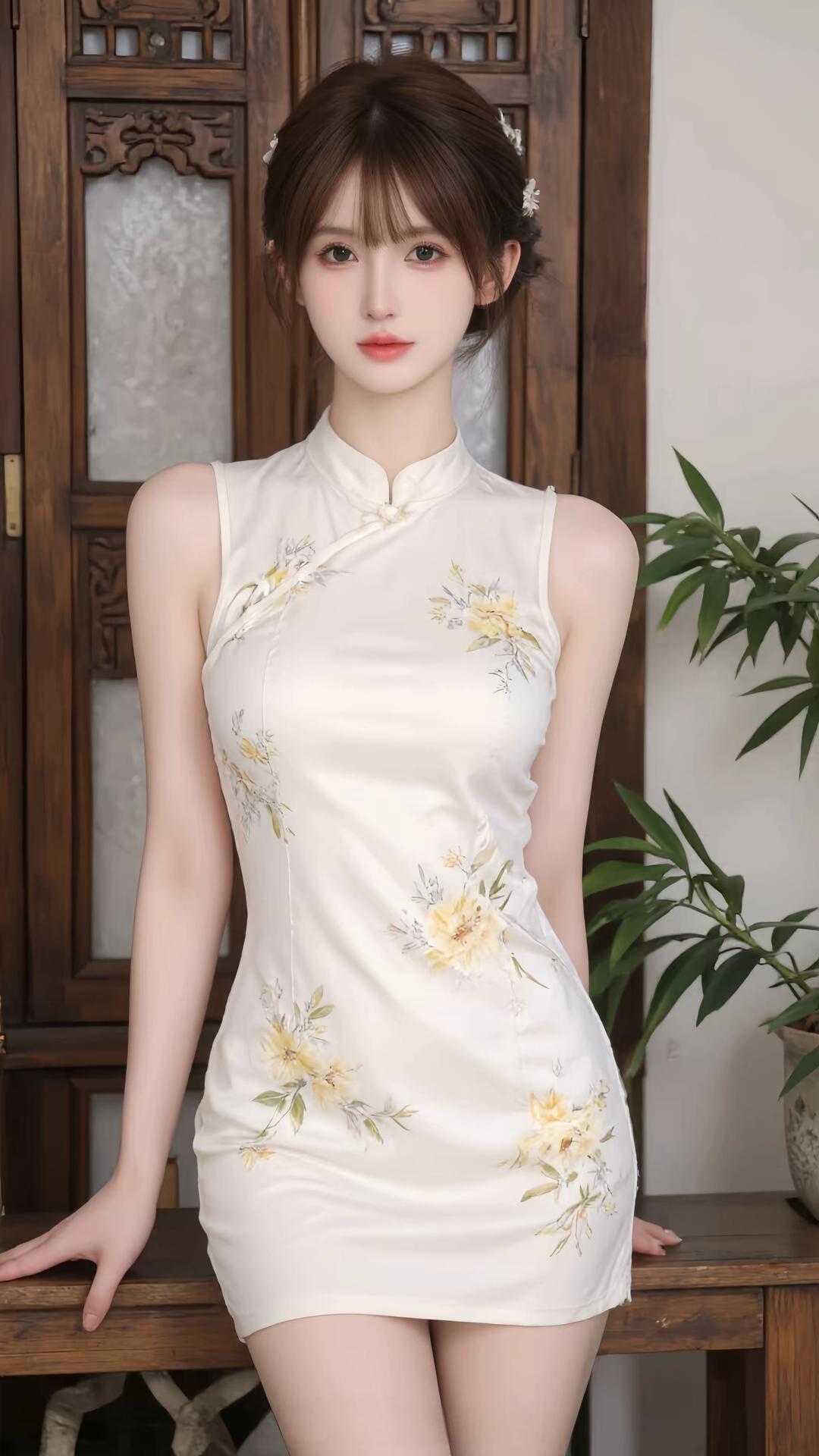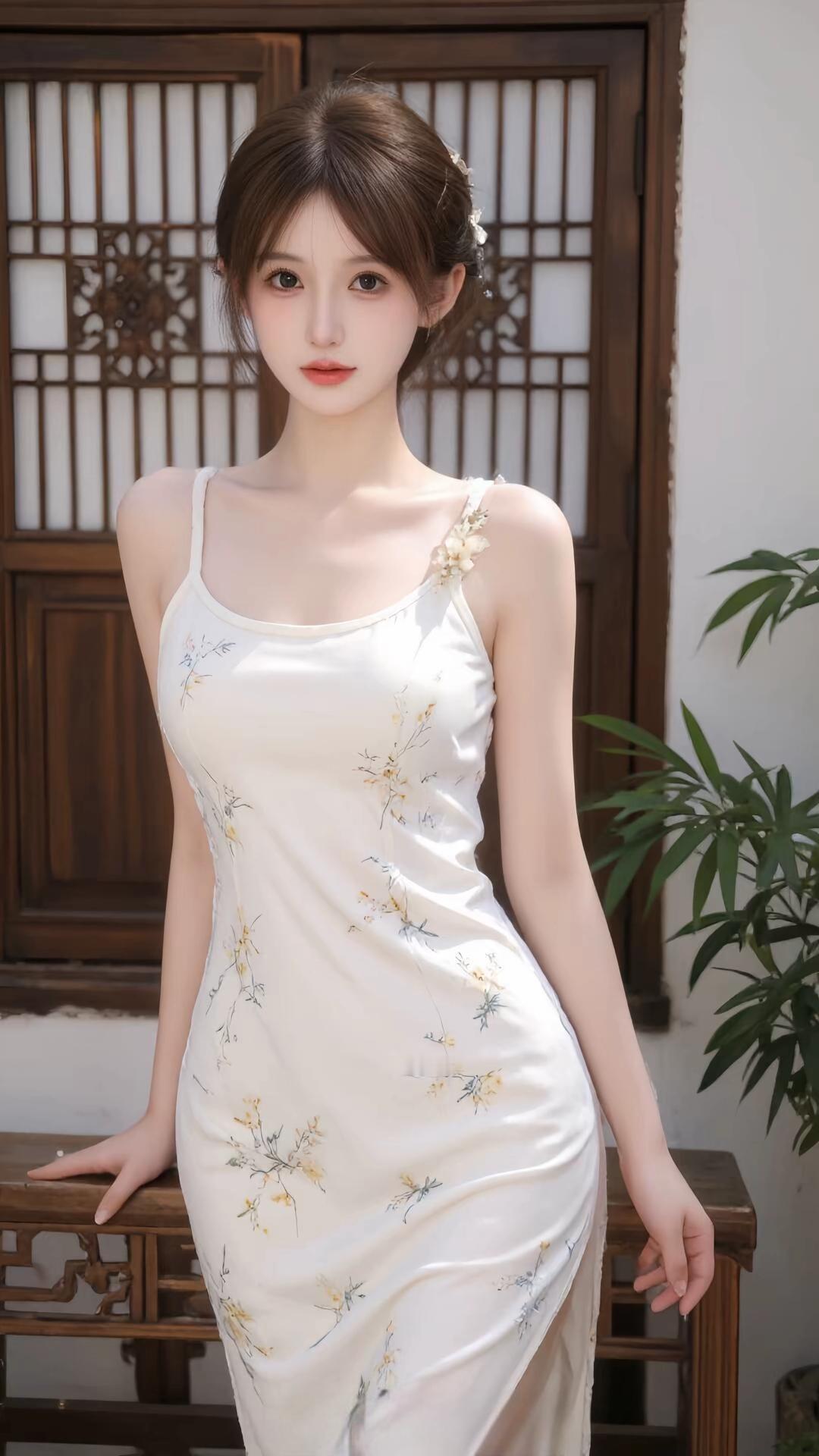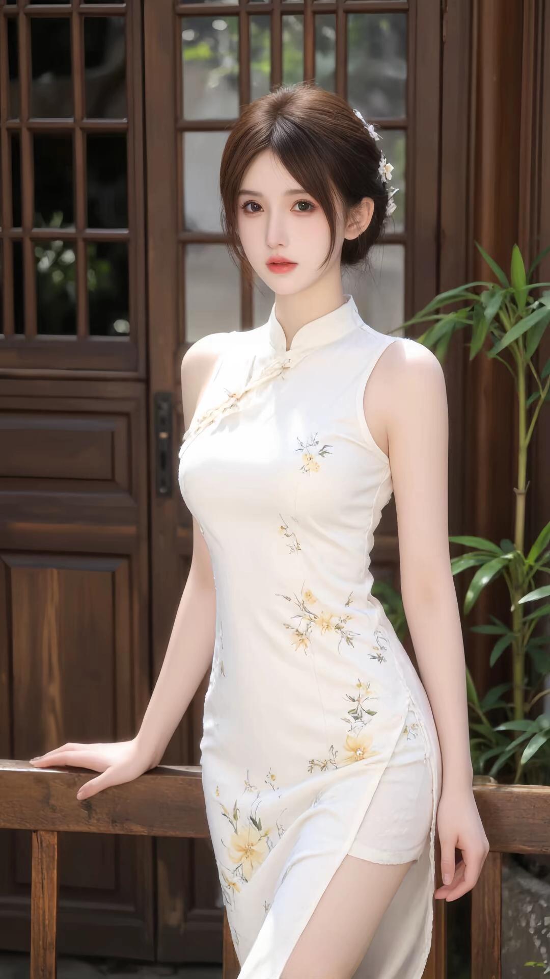 优雅白裙,花间少女,静谧时光这旗袍裙子真漂亮。温柔白裙写真 气质美少女写真