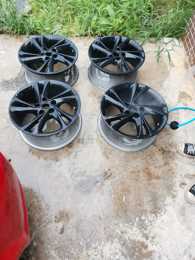 轮毂改个色 原车轮毂真的不好看,本来想做个拉丝,担心氧化有黑点不好看,先改个黑色试试