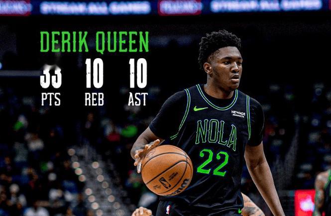 自古英雄出少年!NBA历史上,仅有5位球员在21岁生日前就砍下过30+三双,他们分别是詹姆斯、东契奇、达龙-福克斯、文班亚马,还有就是今天的德里克-奎因!不敌马刺这场比赛,奎因出战33分钟,15投11中,罚球13投11中,最终空砍33分10板10助,难得的是还有4个封盖。