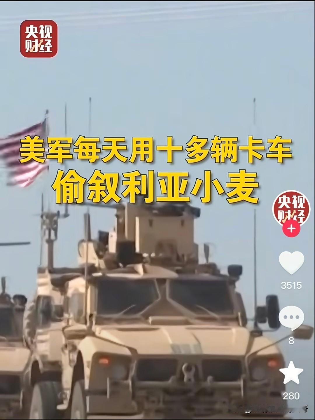 刷到两个关于美国的视频,一个是美军用卡车偷叙利亚小麦,一个是用卡车给叙利亚送小麦