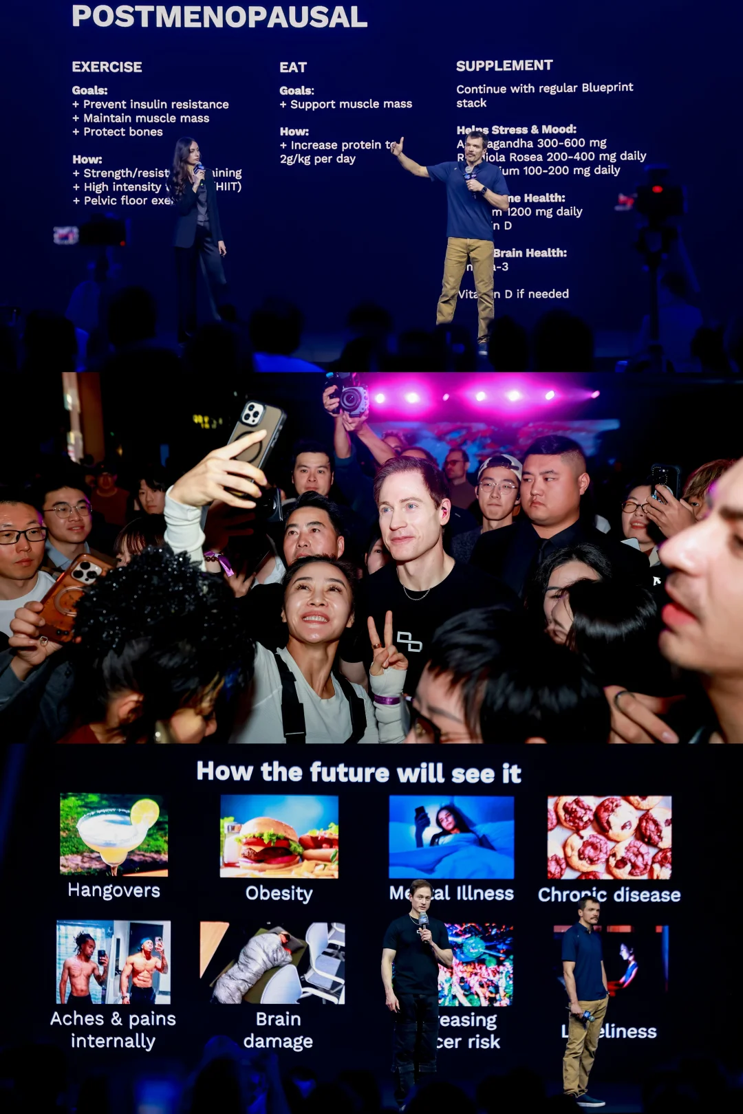 他的演讲核心不只是“活得更久”,而是 “减少各器官的磨损差异” 。就像保养车子,不能让发动机还是新的,刹车先坏了。他庞大的数据监测,都是为了实现全身同步的、更“年轻”的状态。他现场带着大家签署“抗衰承诺函”的环节,仪式感拉满,那一刻真的觉得健康是给自己最郑重的承诺。