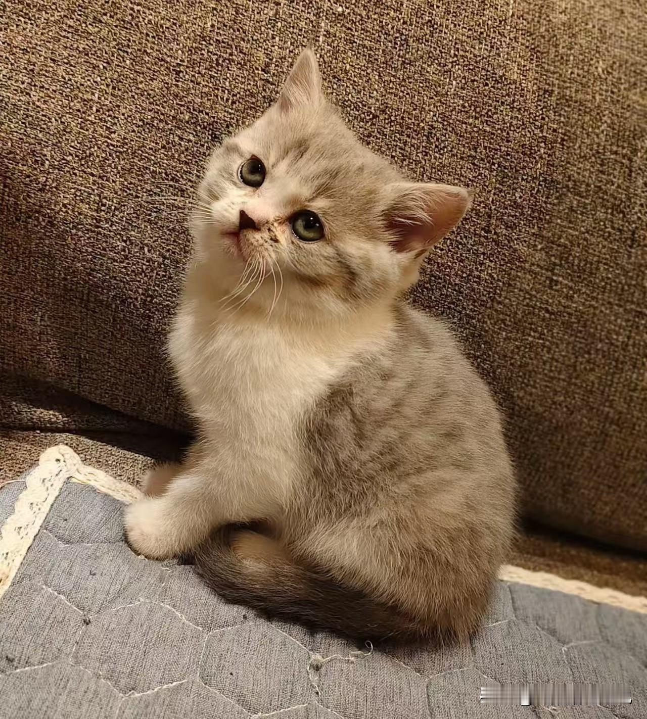 每次看到手机里拍的这只小奶猫的照片,心都要化了!你看它圆滚滚的身子蜷在沙发边,浅灰色的绒毛软乎乎的,胸口和小爪子还带着奶白色的毛,像揣了团棉花似的。 那双圆溜溜的大眼睛睁得溜圆,好奇地歪着头往上看,小鼻子粉嫩嫩的,嘴边还沾了点小污渍,估计是刚偷吃完小零食,傻乎乎的样子超可爱。 小耳朵支棱着,尾巴乖乖绕在腿边,整只猫透着一股懵懂又娇憨的劲儿,就这么静静看着它,都觉得所有烦心事都被治愈了,真想伸手把这只小团子抱进怀里揉一揉呀。