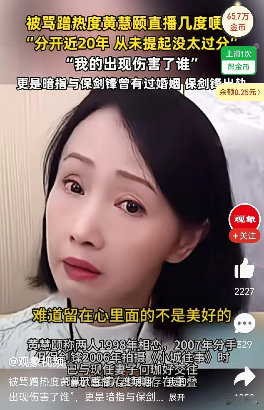 一场直播, 炸出“前任”的顶级杀伤力! 娱乐圈的“陈年旧瓜”突然爆汁是什么体验? 黄慧颐用一场泪眼婆娑的直播给出了答案。没有声嘶力竭,只是平静的哽咽,就足以让“保剑锋前女友”这个话题冲上热搜。 网友分成两派:一边痛斥男方团队或现任“网暴”,力挺女方勇敢;另一边则质疑时隔多年旧事重提的动机。 无论如何,这场“回忆杀”的威力证明了一点:一段深刻的旧情,永远是埋在网络舆论里的“彩蛋”! 你不知道它何时会被触发,并引爆怎样的情感共鸣。