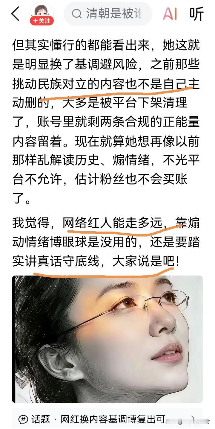最近蒙主事件闹得沸沸扬扬。有人断章取义地剪辑蒙主关于清朝历史的评论,在网上带节奏,搞得网友们一边倒地站队。可很多粉丝都明白,这根本不是完整表达。 其实蒙主在9月20号第四届西史辩伪论坛的发言,就展现出她对历史的深刻见解,还预见了如今论战的一些结果,她是带着历史使命参与文化论战的。蒙主删视频涨粉,那些“跳梁小丑”还沾沾自喜啥?她正式发言趋向保守,就是不想给黑子抹黑机会。真正懂她的粉丝,知道她是为了文化崛起在努力,哪能被这些低级操作影响。期待蒙主凉凉,做梦去吧。