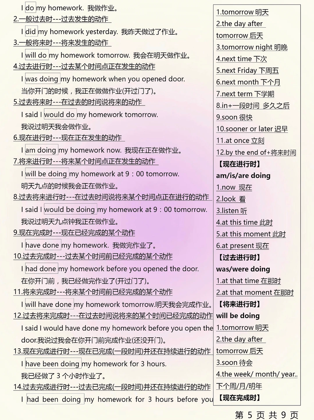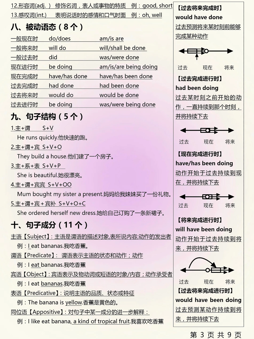 英语时态一眼秒懂!时态一目了然!不迷茫!