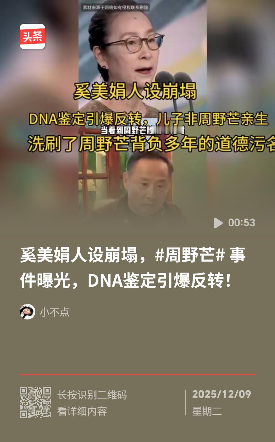 反转!奚美娟30年"单亲妈妈"人设崩塌,法院文书戳破离婚谎言 老戏骨奚美娟口碑一夜翻车!一份法院胜诉文书,像惊雷般炸碎她维持三十年的"受害者"滤镜,真相让人瞠目结舌。 1994年,周野芒因《水浒传》林冲一角爆红,奚美娟凭《儿女情长》崭露头角,事业巅峰期的两人悄然离婚。此后多年,奚美娟在采访中屡屡提及"产后被弃",让周野芒背上"抛妻弃子"骂名,自己则靠"单亲妈妈"人设收获满屏同情,事业一路高歌。 2023年,不堪谣言困扰的周野芒起诉维权,胜诉后曝光的文书揭开关键真相:两人婚姻存续期间并无共同子女!"产后被弃"的说辞纯属虚构,如同精心编织的泡沫,一戳就破。 婚姻里的分分合合本是常事,可借着谎言给自己贴"悲情标签",让他人蒙冤数十年,实在难以让人认同。奚美娟的经历恰似一面镜子,照见诚信在人设面前的重量。 纸终究包不住火,靠欺骗换来的体面终是镜花水月。婚姻中的是非对错本难厘清,可底线不能丢。你觉得明星该为过往谎言买单吗?周野芒奚美娟 奚美娟,周野芒 奚美娟演技