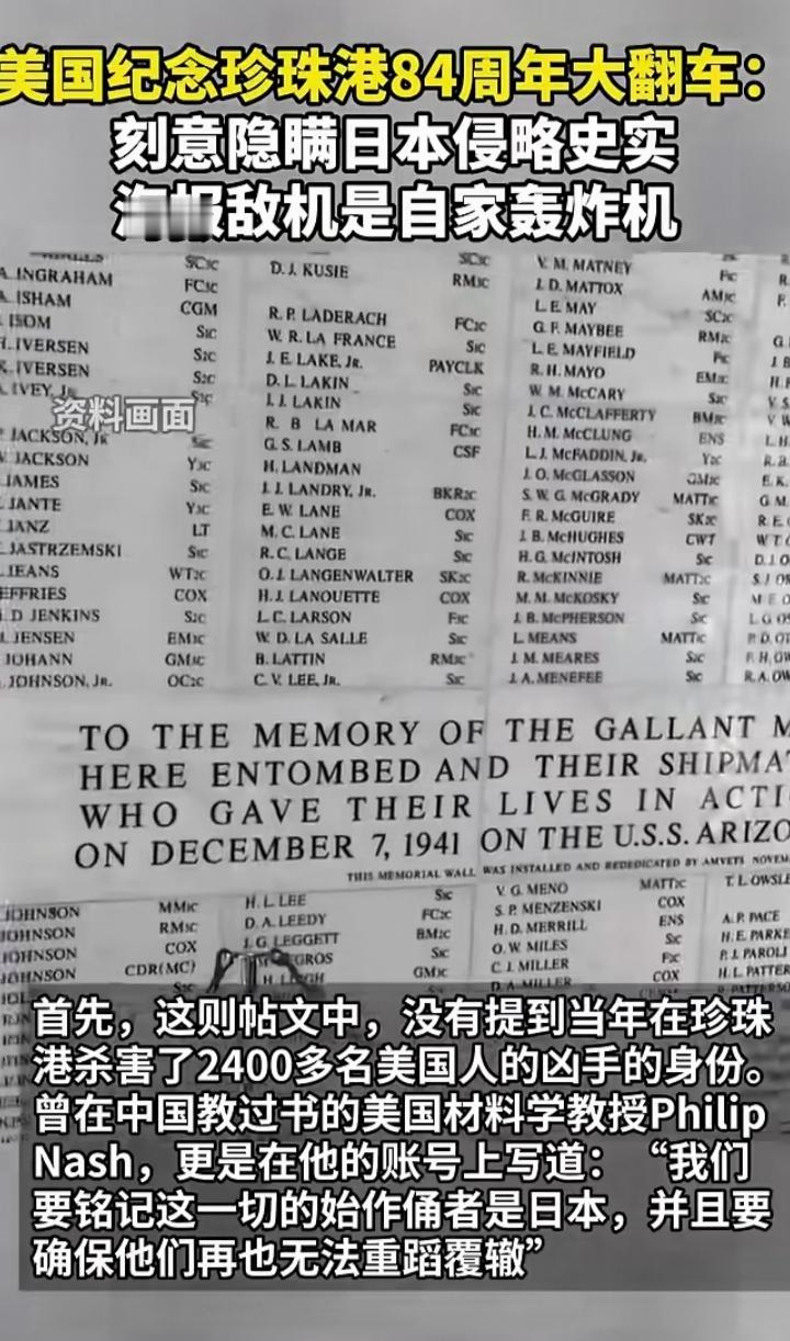 太离谱了!前阵子才闹出美国国安部官网IP地址在以色列的笑话,现在美国国防部又来出洋相! 事情是这样的: 12月7日,美国国防部(现改名为“战争部”)在其官网发海报纪念珍珠港遇袭84周年,配文上写着“永远不会忘记”。🇺🇸✈️💥 结果凶手“日本”俩字死活不见踪影,围观的网友打趣:说好的“不忘”呢?难道当年是“空气”炸的? 更离谱的是,海报里三架“敌机”,其中占C位带队轰炸的竟然是一架美军自家的TBF轰炸机!这是把自家飞机P成“反派”来凑数吗? 还是说当年日本偷袭珍珠港,是美军自己人带队过来轰炸的呢?难怪文案里对偷袭者日本只字不提,原来元凶是自己人啊?!哈哈哈😂 当年珍珠港有2400多名美国人被日军偷袭身亡,现在为了拉拢日本搞“印太战略”,连祖宗的仇都能“选择性失忆”,这波操作真是“为了盟友连历史都敢P”!这波“翻车”真是又尴尬又好笑,建议美军下次P图前先补补历史课吧!📚