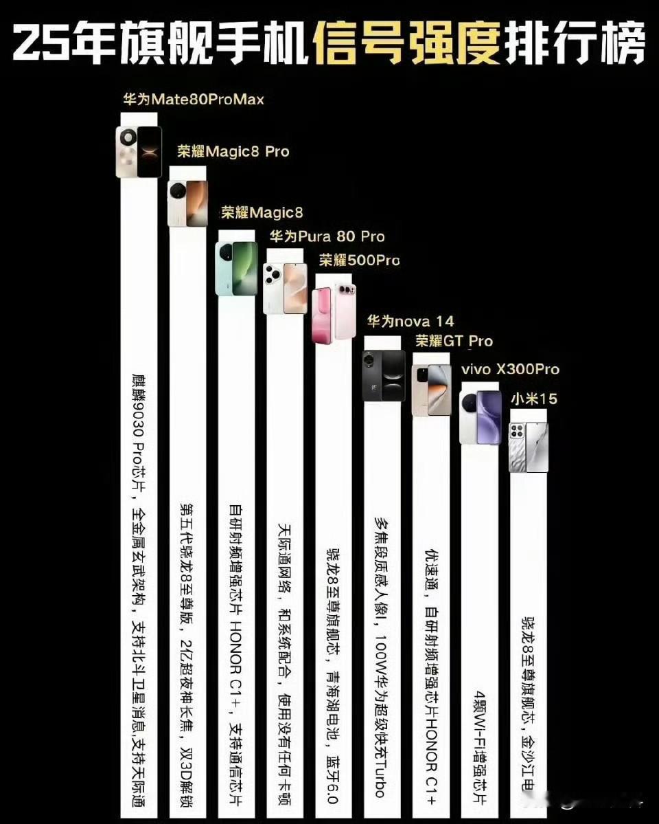 这个排名 属实有些问题 拿25年底发布的新机 和24底发布的新机相比 属实有些故意 虽然我支持华为 但也要实事求是 标准需统一 拿新机与旧机相比 属实过于偏袒华为和耀子了 但不得不说 两家企业在通信上 于国产品牌中 肯定是第一梯队 但像小米 若拿小米17和华为荣耀相比 想来也不会太差 起码不会垫底 手机