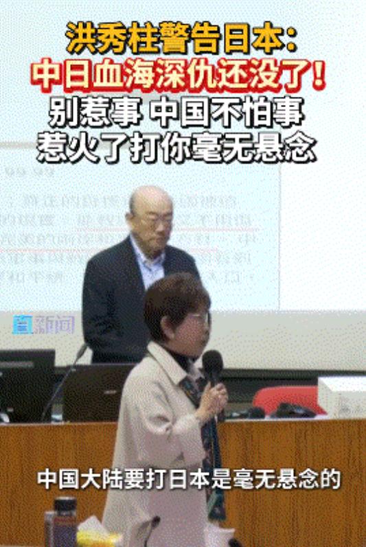 洪秀柱:小日本别太嚣张,惹火了大陆打你毫无悬念! 为爱国统派女英雄点赞!讲出了中华民族两岸人民的心声! 公开站出来,清清楚楚明明白白的警告小日本,中国人(包括中国台湾省的中国人)同仇敌忾。洪秀柱巾帼不让须眉,比那些台岛内的国民党的一些缩头乌龟强一百倍。 好样的,巾帼英雄,打倒日本帝国主义!我们同样需要记住的是,能象洪秀柱一样公开警告日本的台湾人,远远少于跑去日本秀日台亲善的台湾人,包括中国纪念抗战胜利八十周年之际!