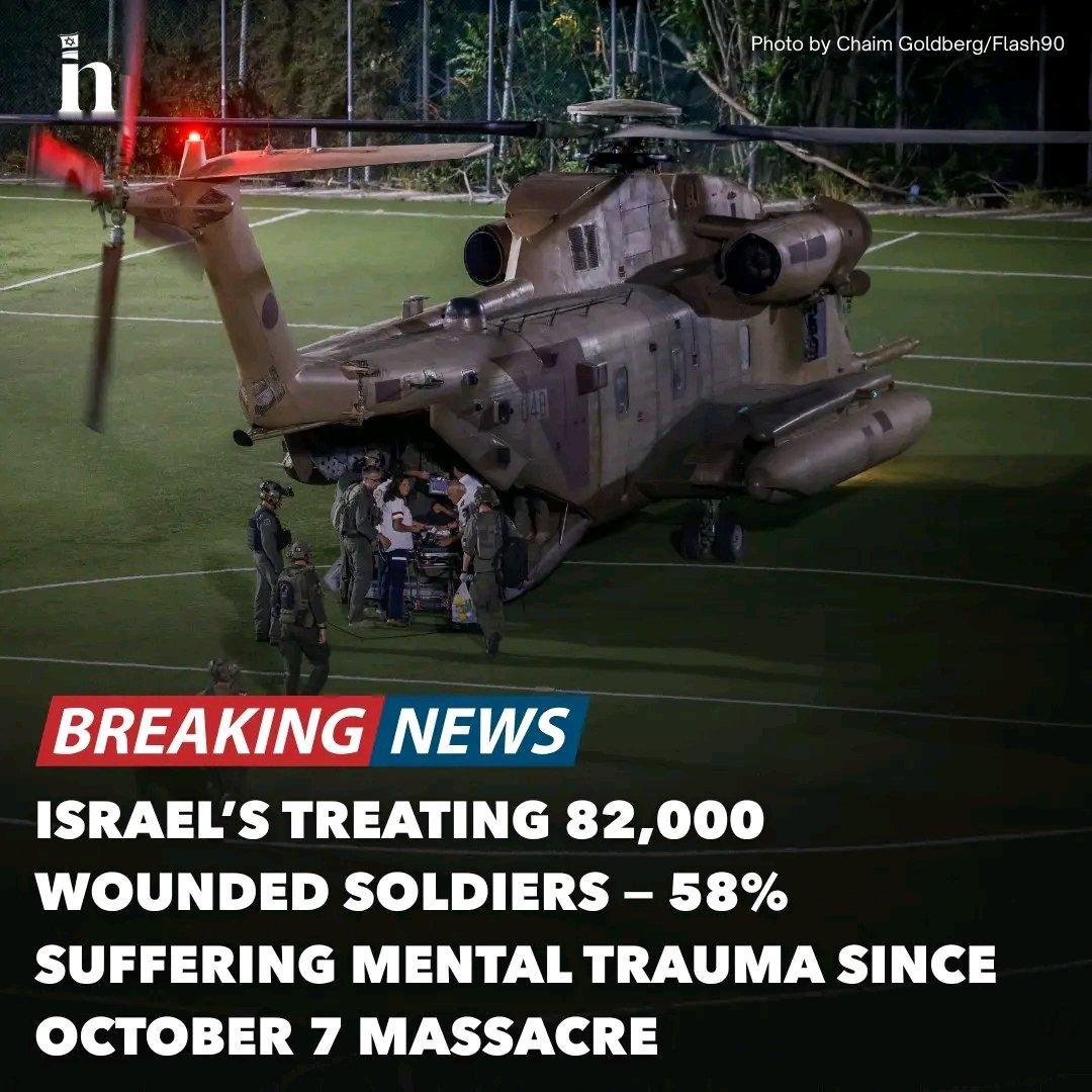 新闻快讯——以色列国防部通报,目前正为8万名受伤士兵提供治疗,其中58%的士兵自2024年10月7日以来饱受心理创伤困扰。