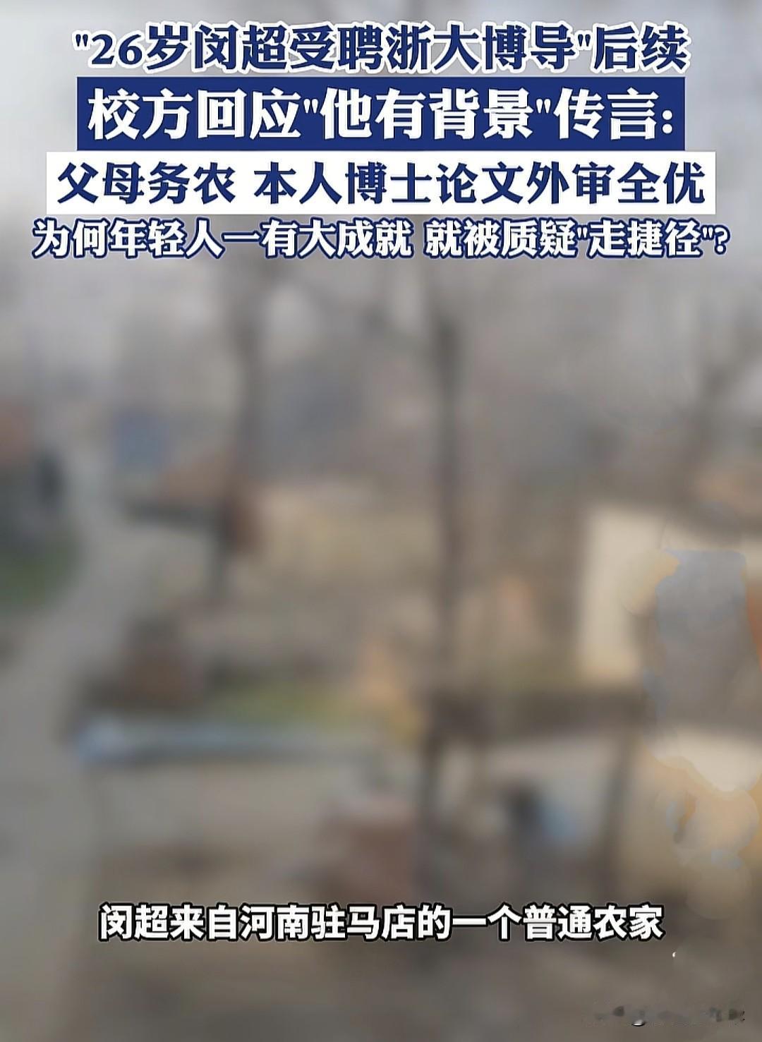 闵超比韦神还牛,两年博士就毕业,毕业就成为浙大的博导,刷新了我国最年轻博导记录,面对质疑学校回应了他的家庭背景,闵超来自河南驻马店普通农村家庭,父母均务农。令人奇怪的是,按理说村里出来的,会有很多邻居和亲戚,咋没人出来证明一下呢。