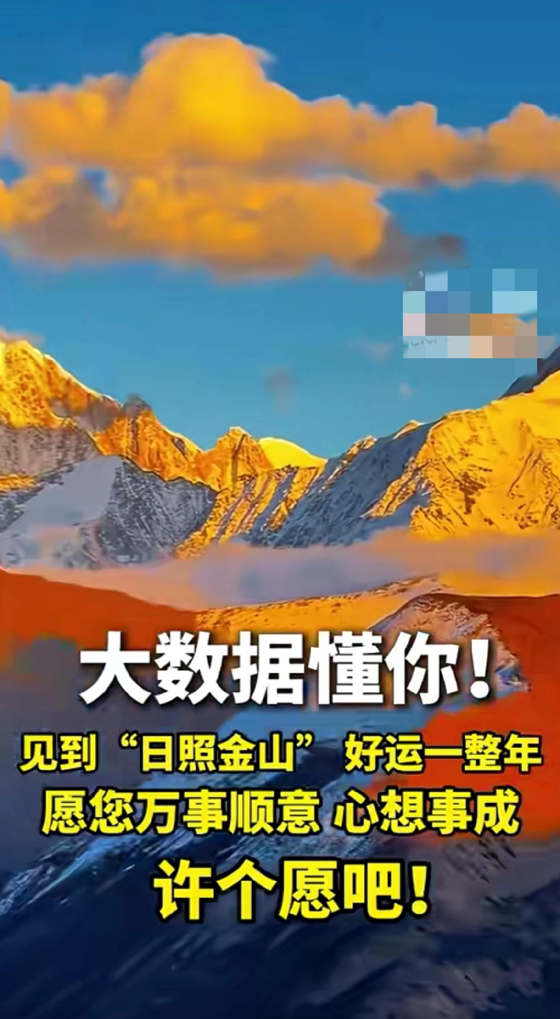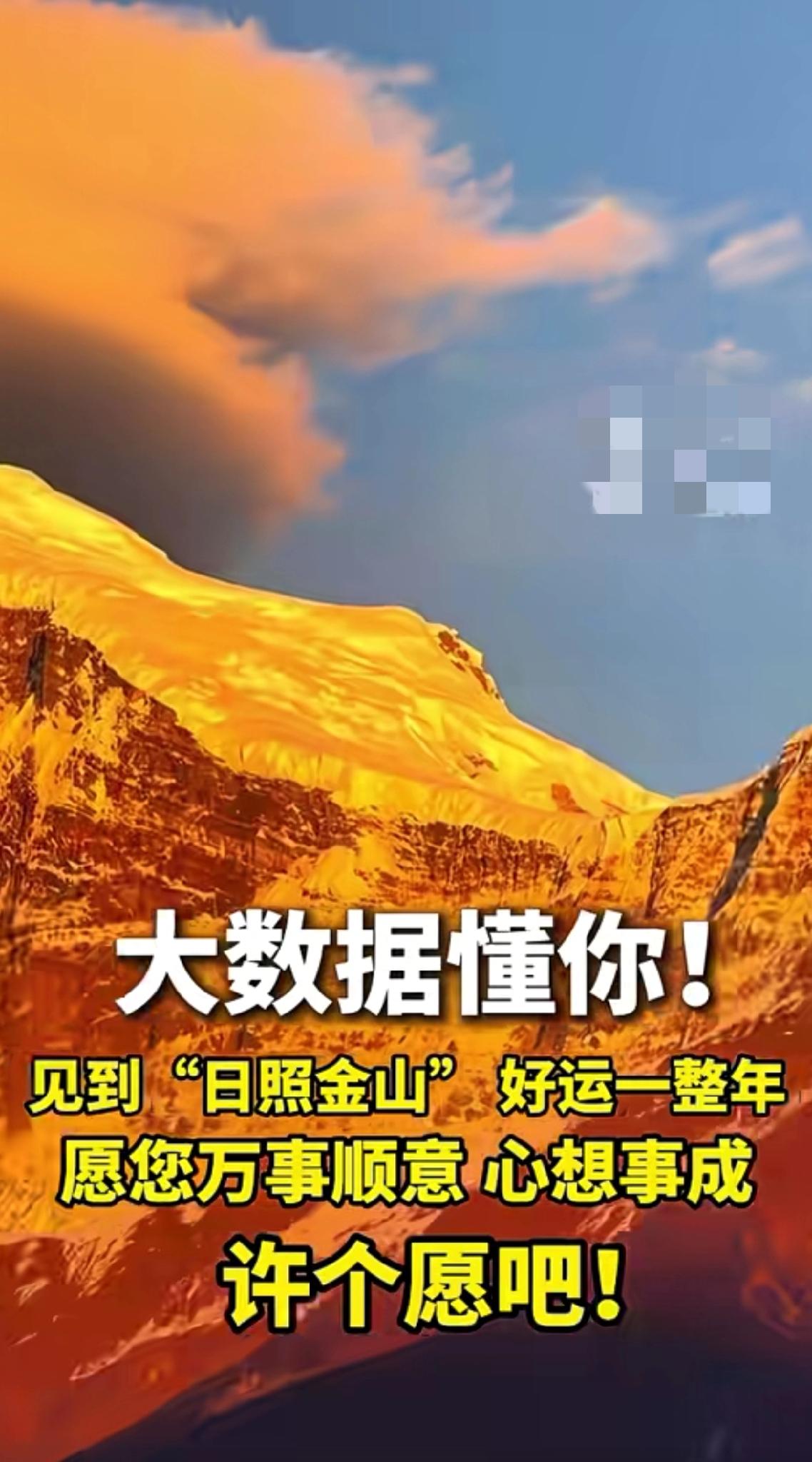 被大数据猜中心意啦! “日照金山”,祥瑞自来; 愿您所求皆如愿,所行皆坦途。 日照金山,那是阳光与山峰的浪漫邂逅,是大自然赐予的绝美奇迹。当第一缕阳光洒在雪山顶,金光闪耀,仿佛世间一切美好都在此刻汇聚。 它不仅是视觉盛宴,更蕴含深厚寓意。古人视之为吉祥之兆,如今,它象征着希望与新生,激励着我们在生活中勇往直前,无论遭遇多少困难,只要坚持,就能迎来属于自己的“金山”时刻。 你是否也曾被日照金山的美景震撼?或者你对它的寓意有独特见解?欢迎在评论区分享。日照金山名场面 奇特的日出金山