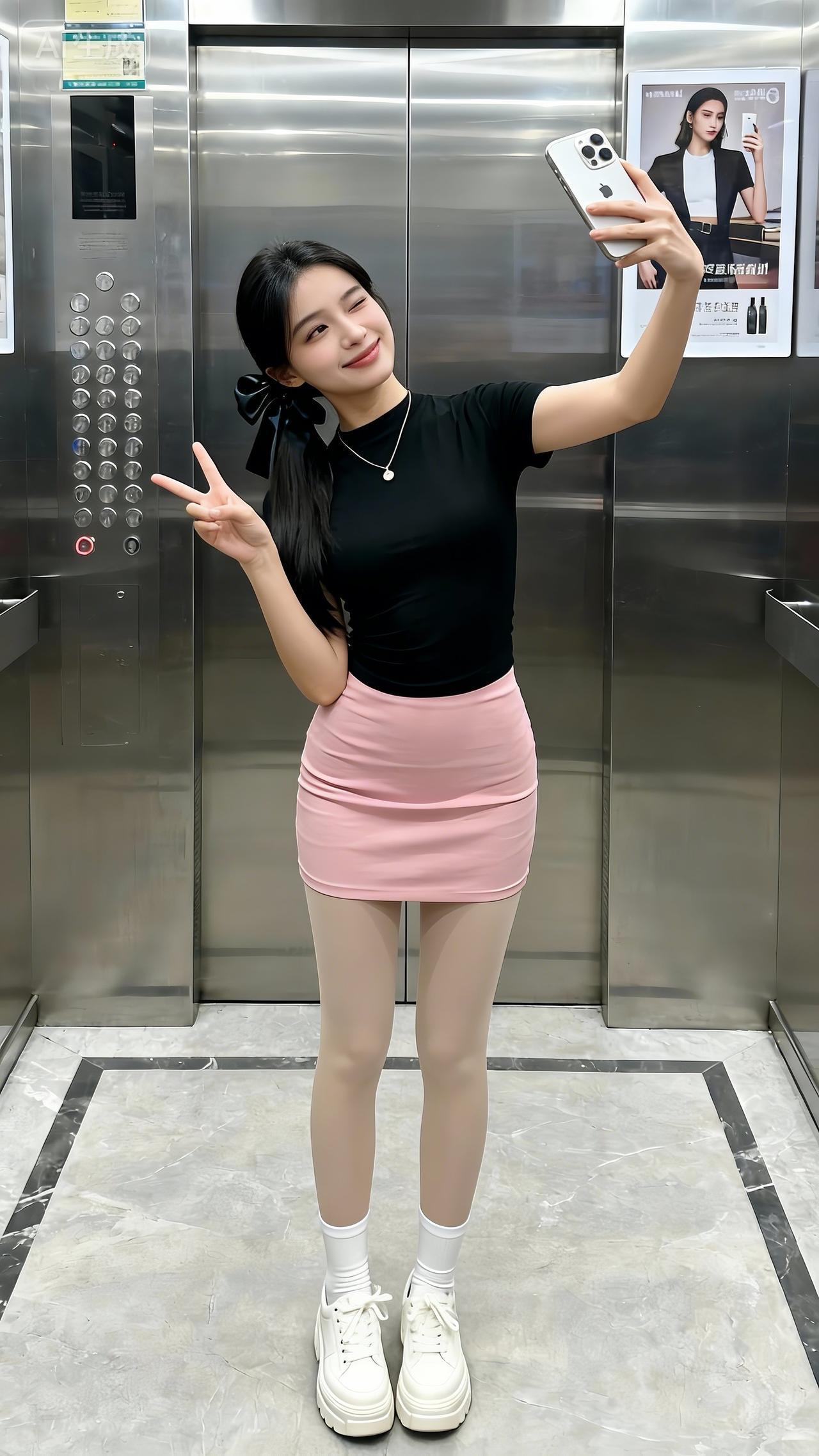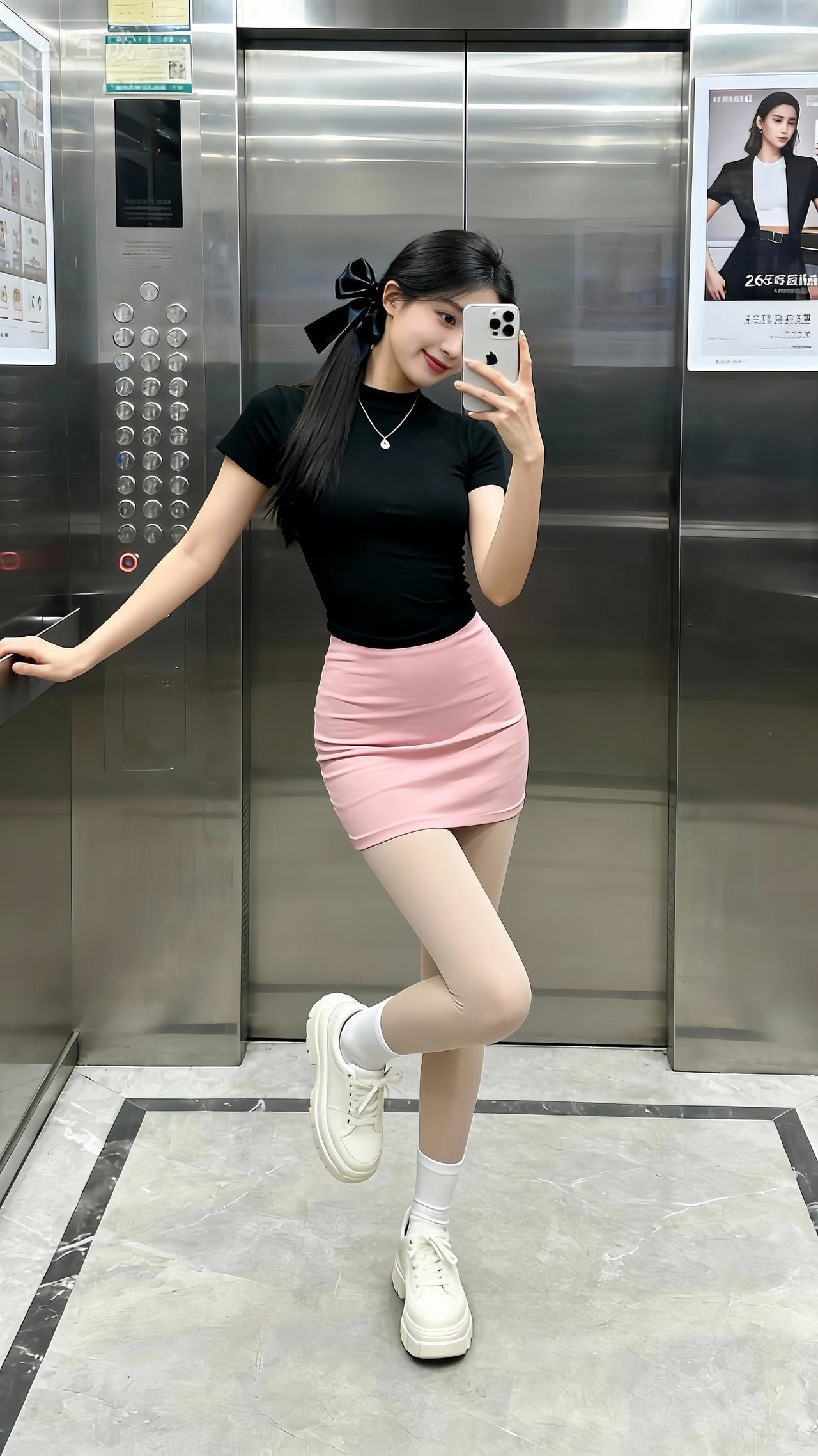 借点阳光,晒点可爱。电梯拍照 穿搭小心机 包臀裙 拍照姿势不重样