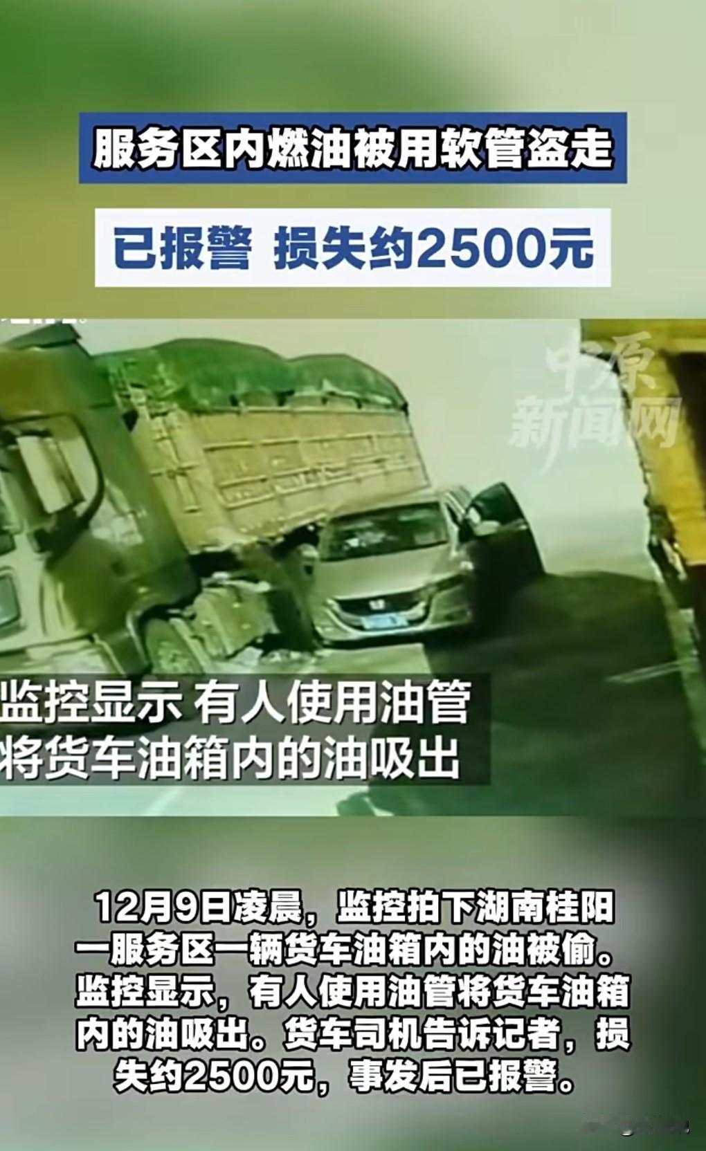 像这种犯罪已经发生过很多年了。 12月9日凌晨湖南某地,监拍一货车燃油被人用软管吸走,损失2500块。 这偷油贼太可恶了,连油都偷,给司机带来这么大的损失。 我祈求用掉这个小偷所有的运气,希望他早日被抓,早日让他坐牢。 要是不抓住的话,那不知多少司机会受害。