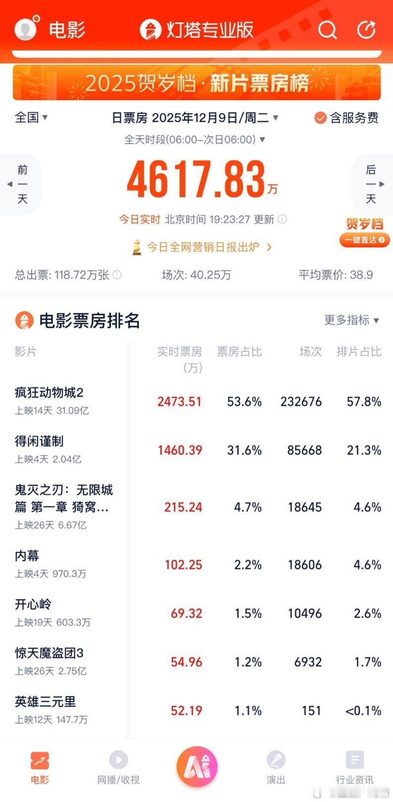 得闲谨制四大平台评分今天票房占比又跑赢了预测,高于排片占比,口碑爆开了,这样的话,明天的排片量应该比今天多了 得闲谨制总票房破2亿