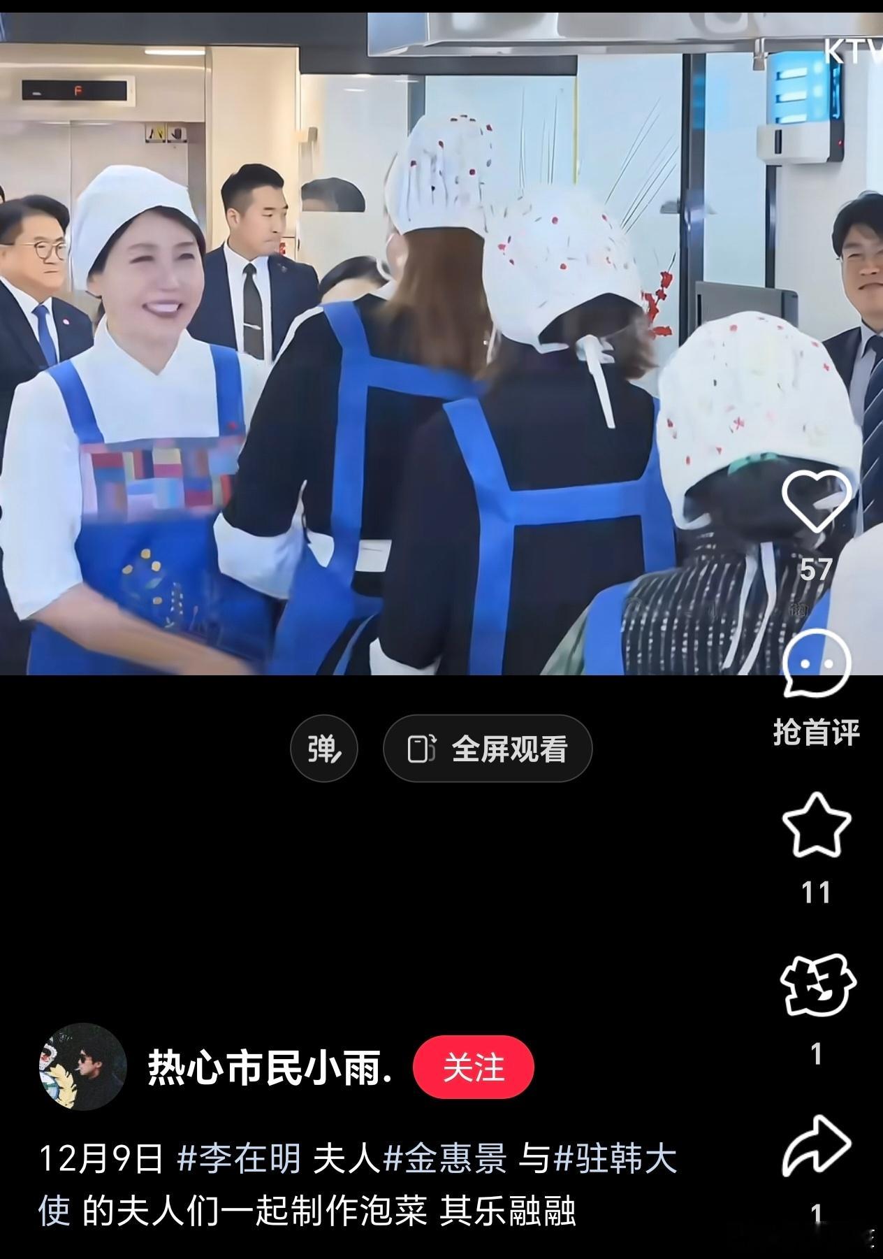 路人缘好就是这样,要是别的总统夫人带着各国大使夫人做泡菜早就被嘲了,但是李在明的夫人路人缘就挺好,没人说这一点,都在夸她