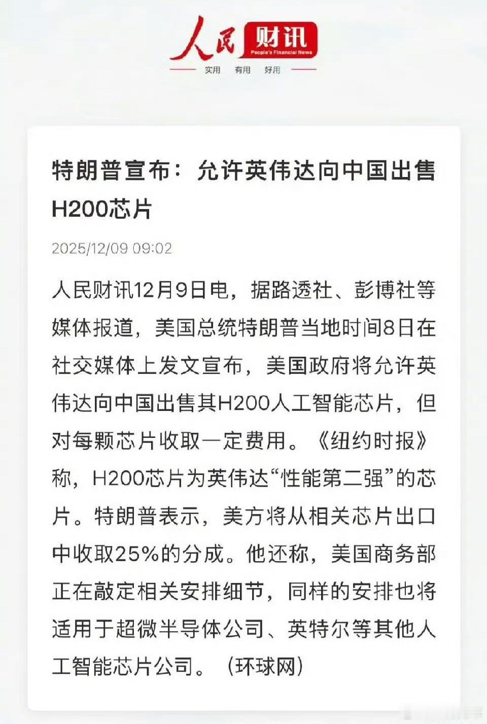 英伟达获准对华出售H200芯片咱们突破了,那边就放开卖了,向来如此~