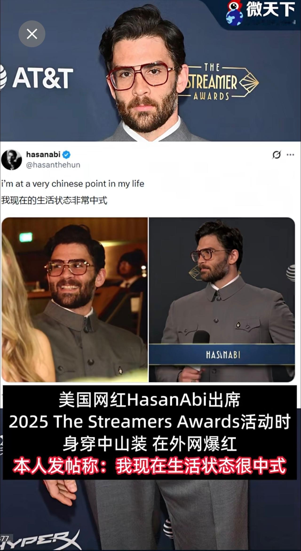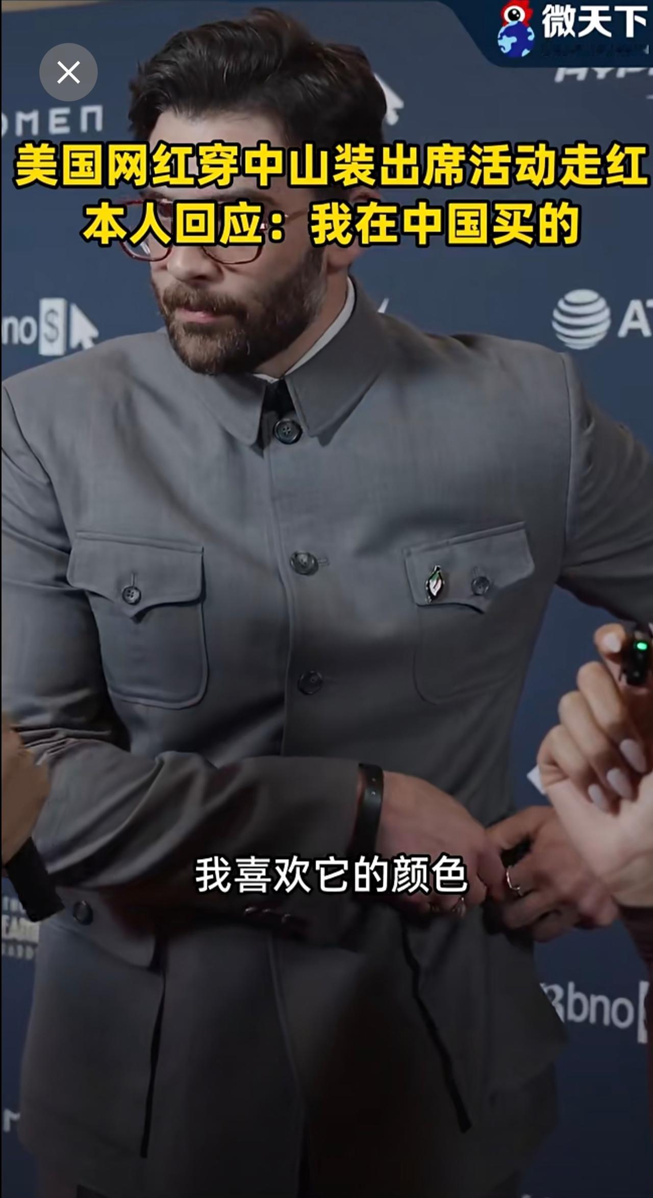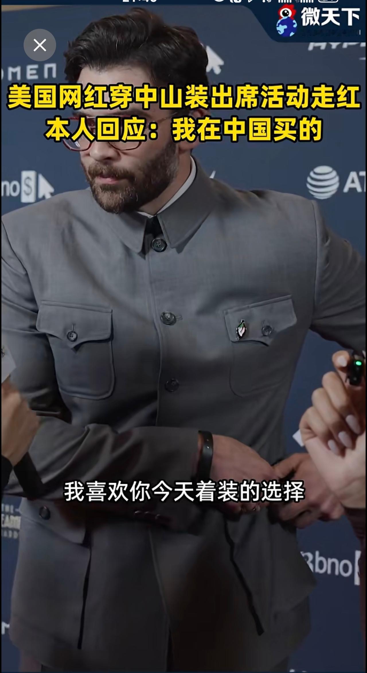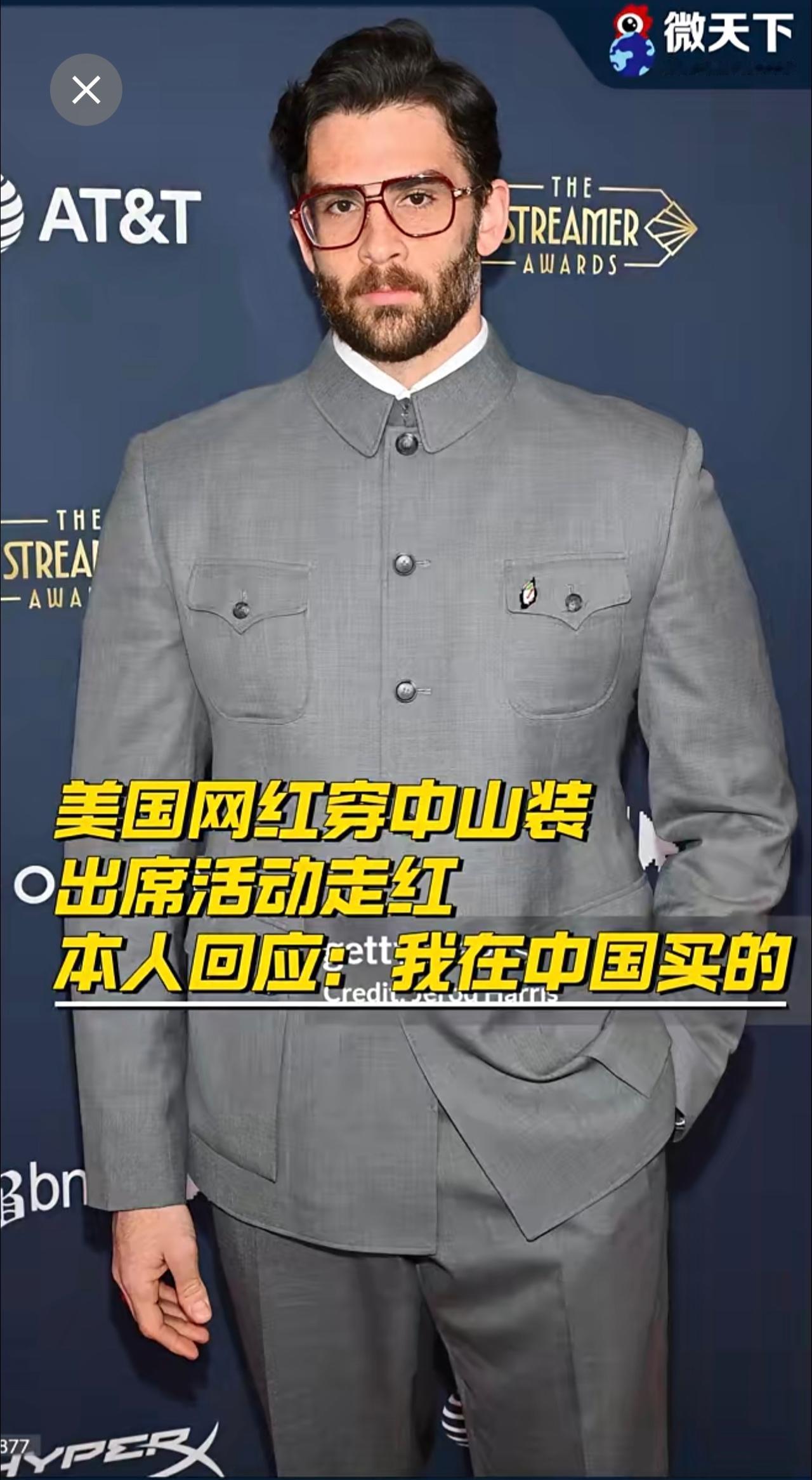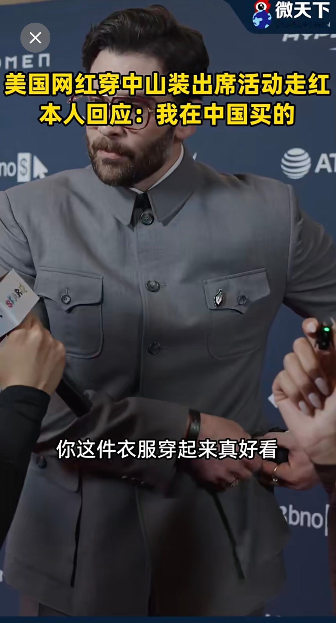美国网红穿中山装出席活动走红,本人回应:我在中国买的,我现在生活状态很中式! 美国 中山装 网红